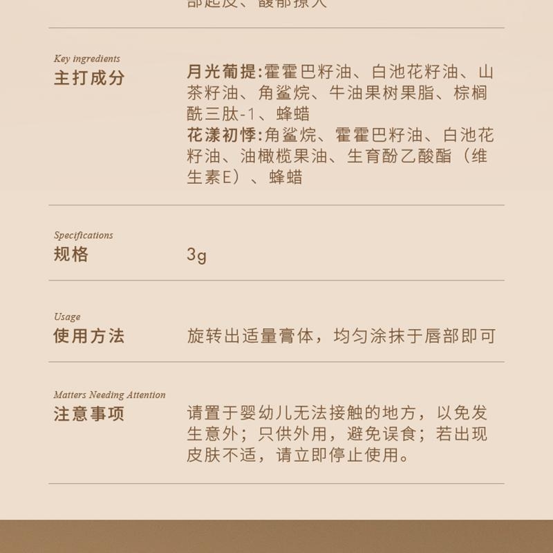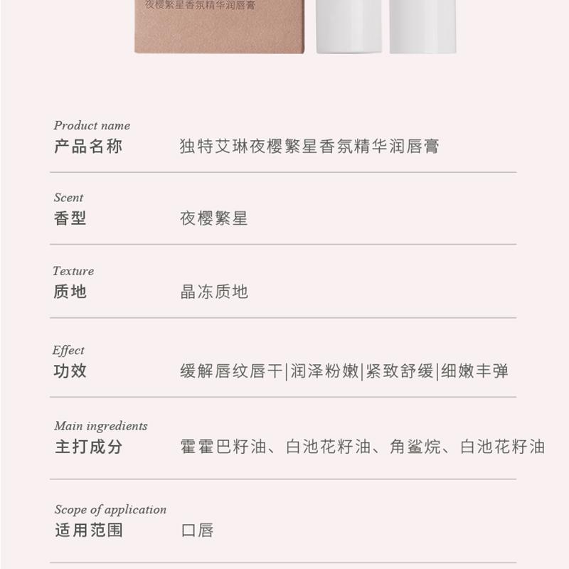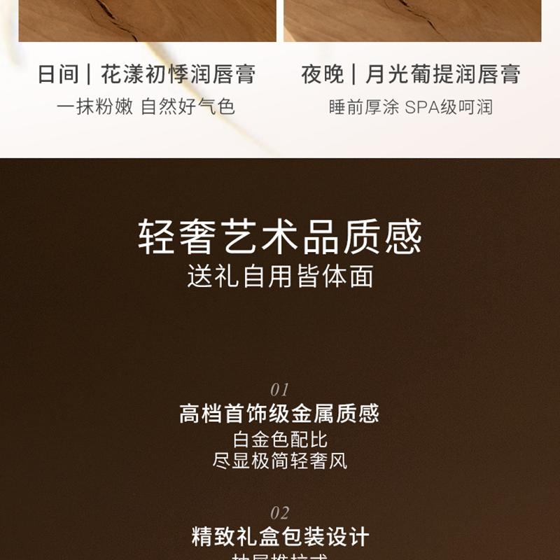 香氛精华润唇膏以油润唇还原嘟嘟水润唇;丝滑柔润质地高级显色清润不糊嘴;高级轻奢质感送礼自用皆宜打造精致的生活仪式感