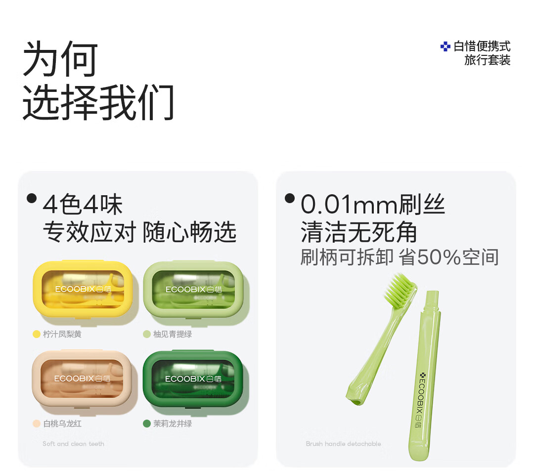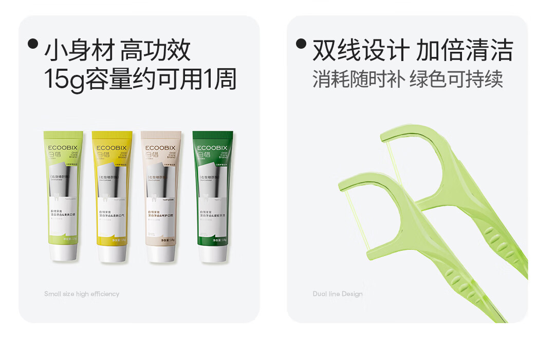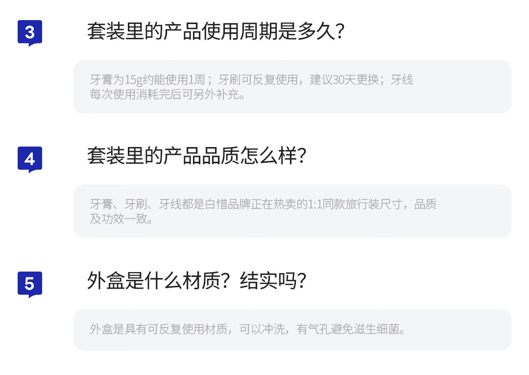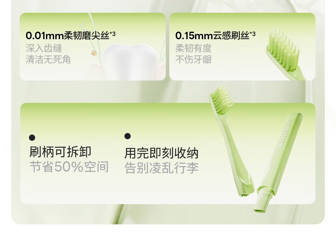配置清单:便携式旅行装*1(牙刷*1+15g牙膏+牙线*2)