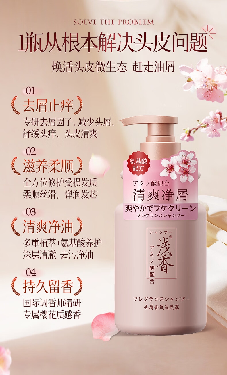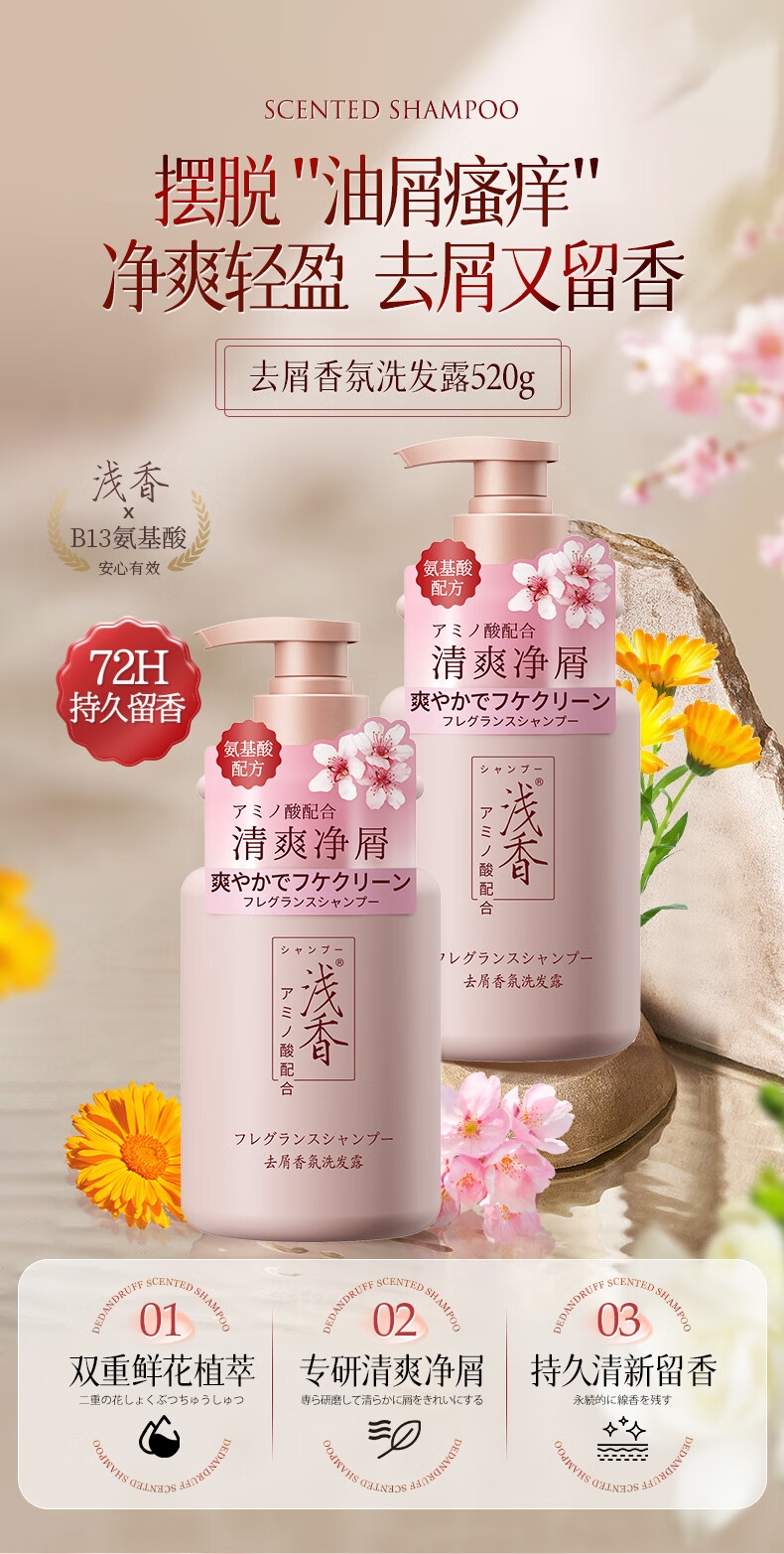 浅香 去屑香氛洗发露圆瓶520gQX5811