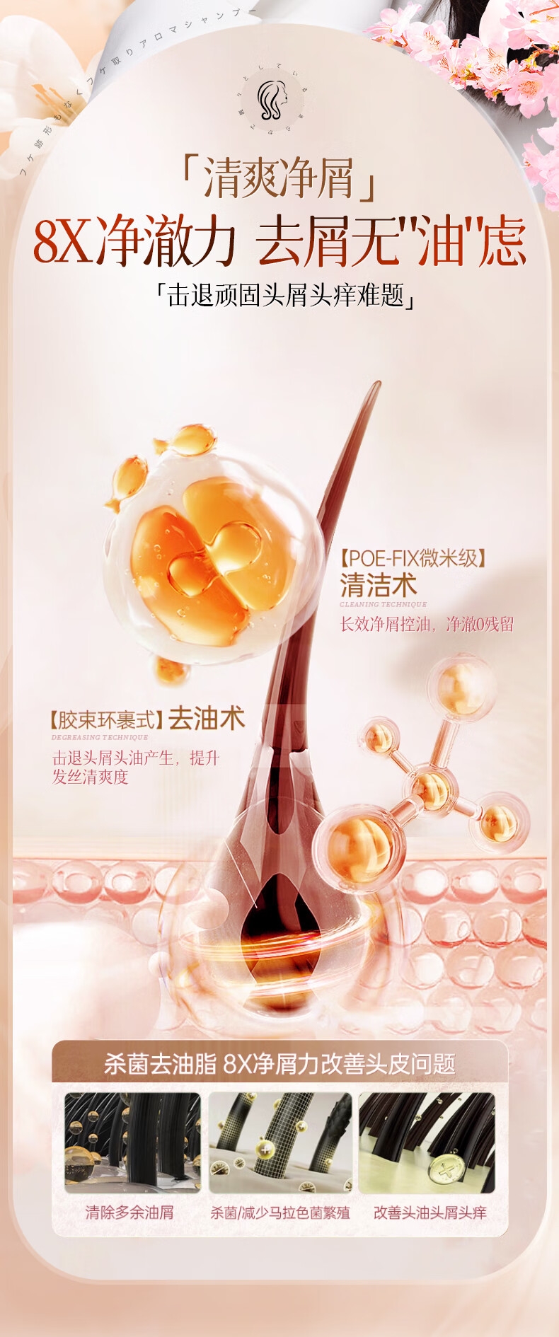 专注柔顺,抚平毛躁;深度滋养,重现光泽;持久留香,发丝生香