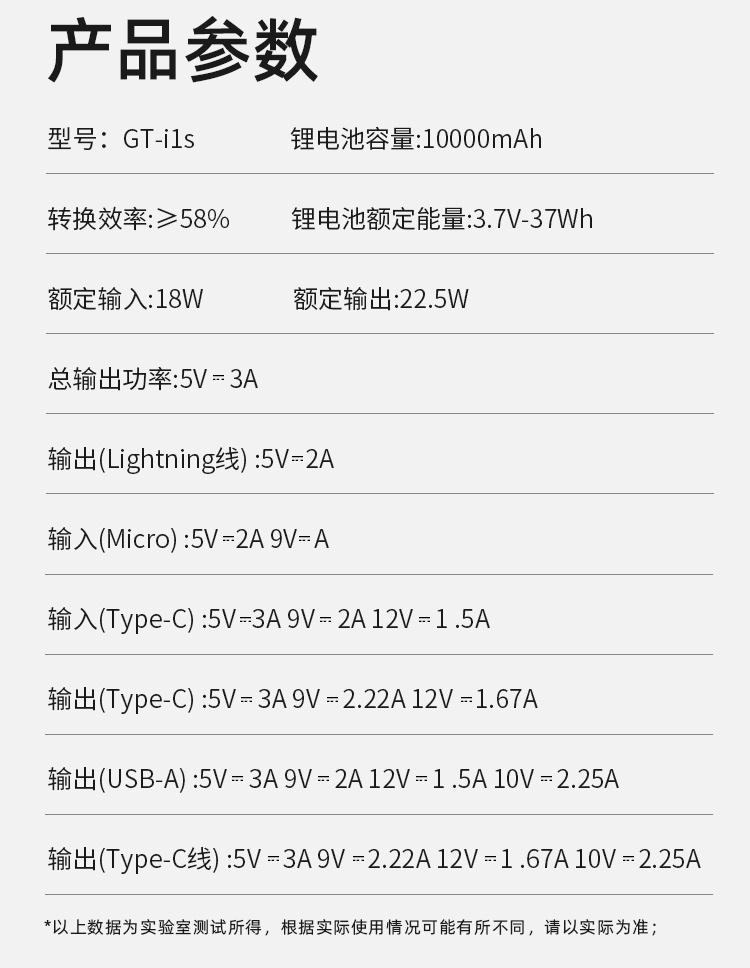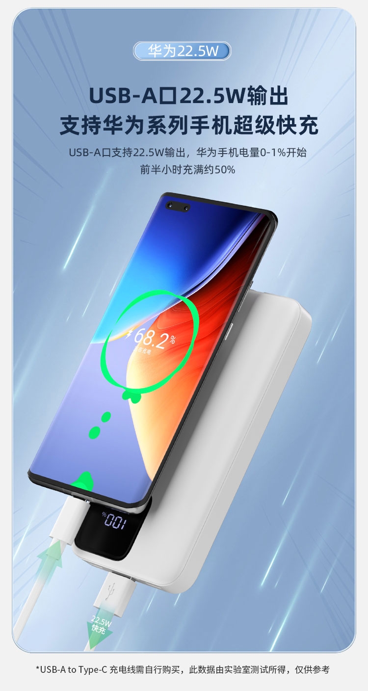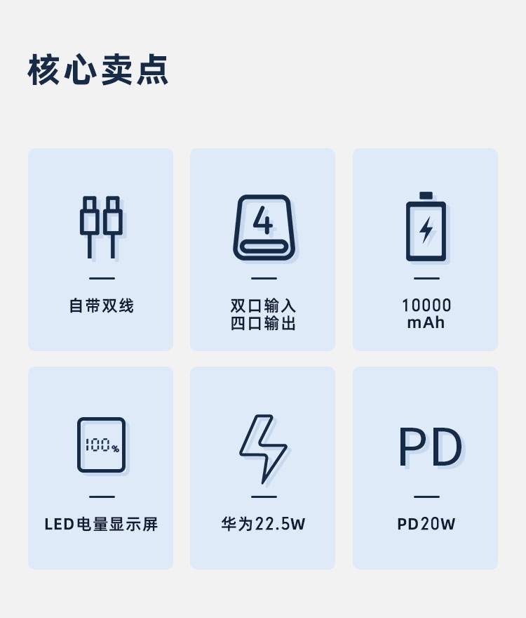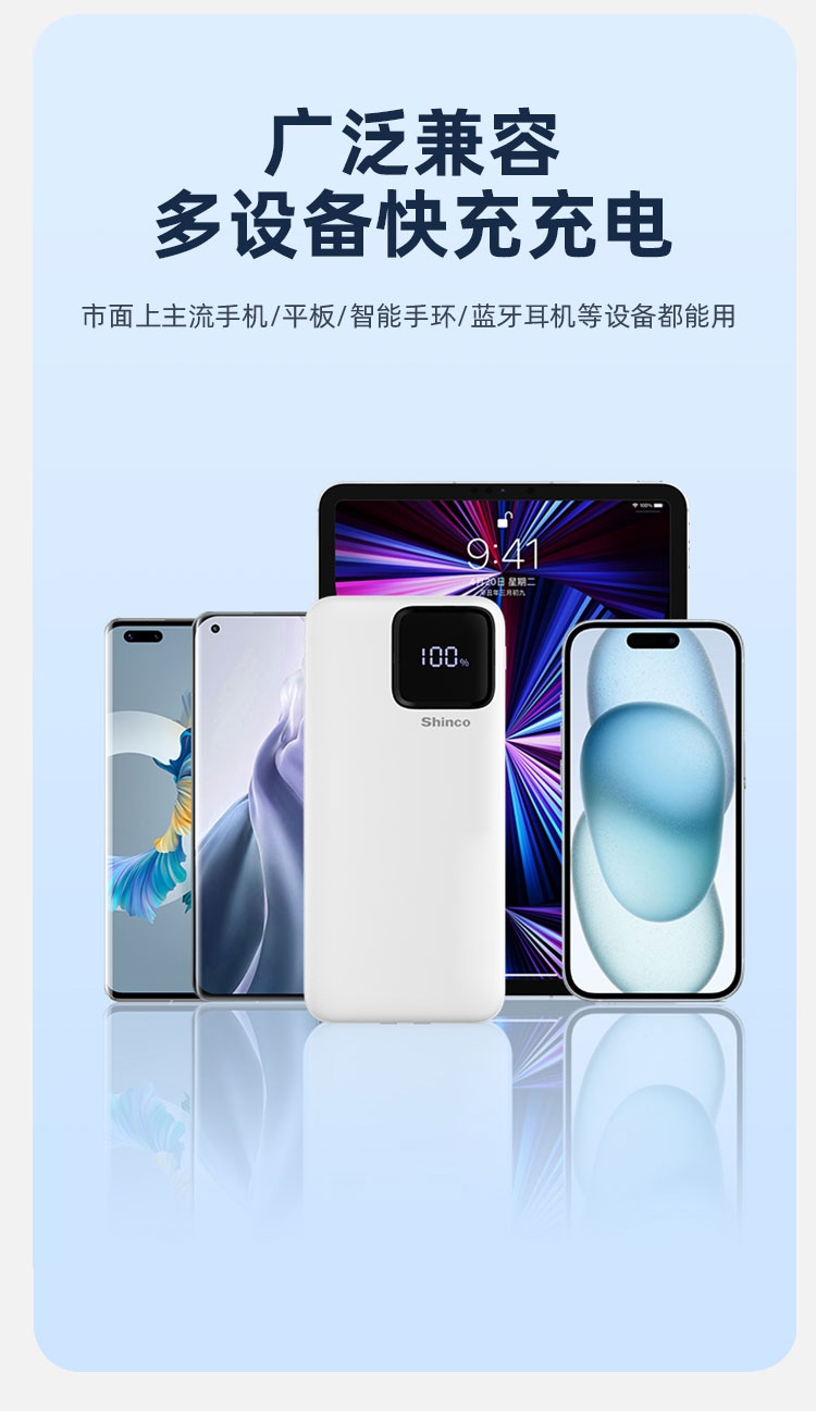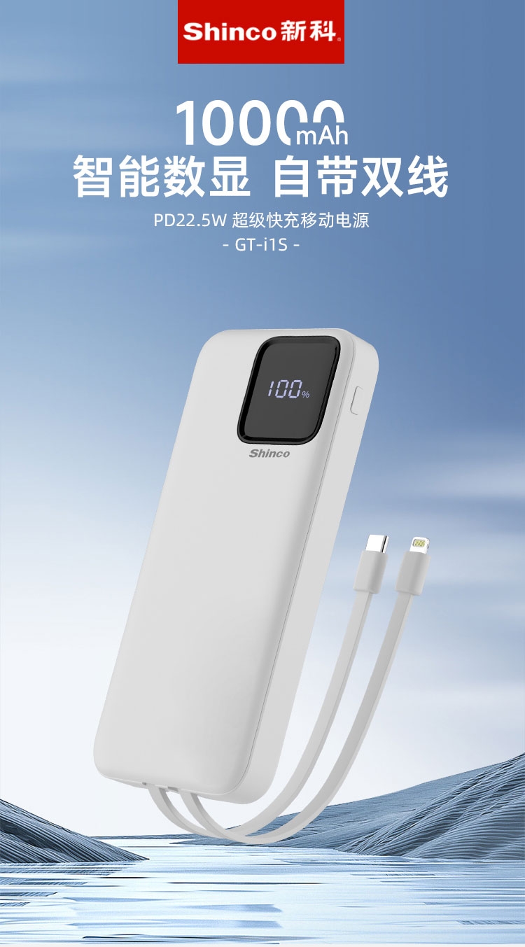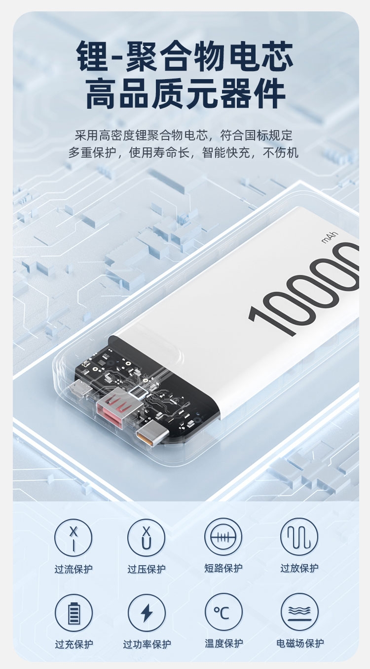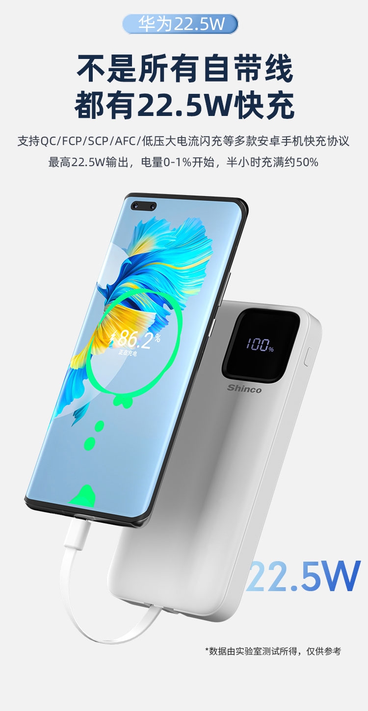 随身自带线 、充电很方便 ;大容量 10000mAh 、持久续航;支持18W双向快充,蓄电时间大幅缩减