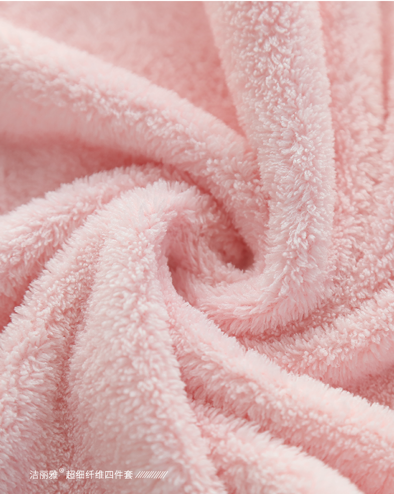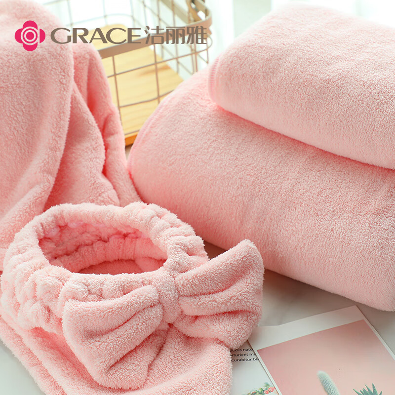 洁丽雅 毛巾浴巾干发帽束发带藕粉四件套BSL-W0499