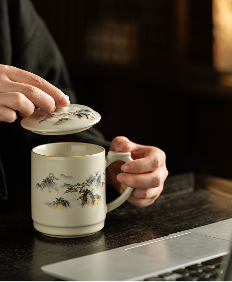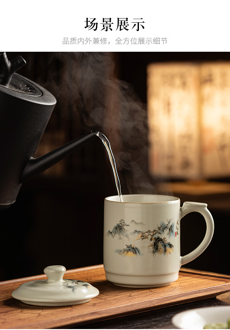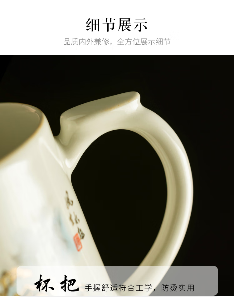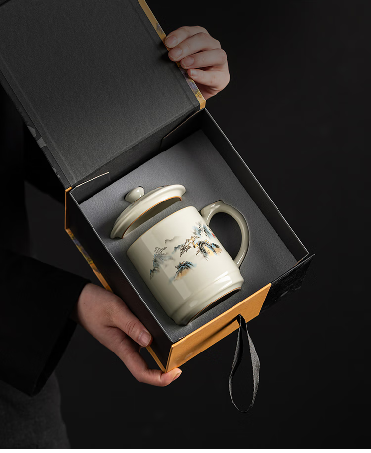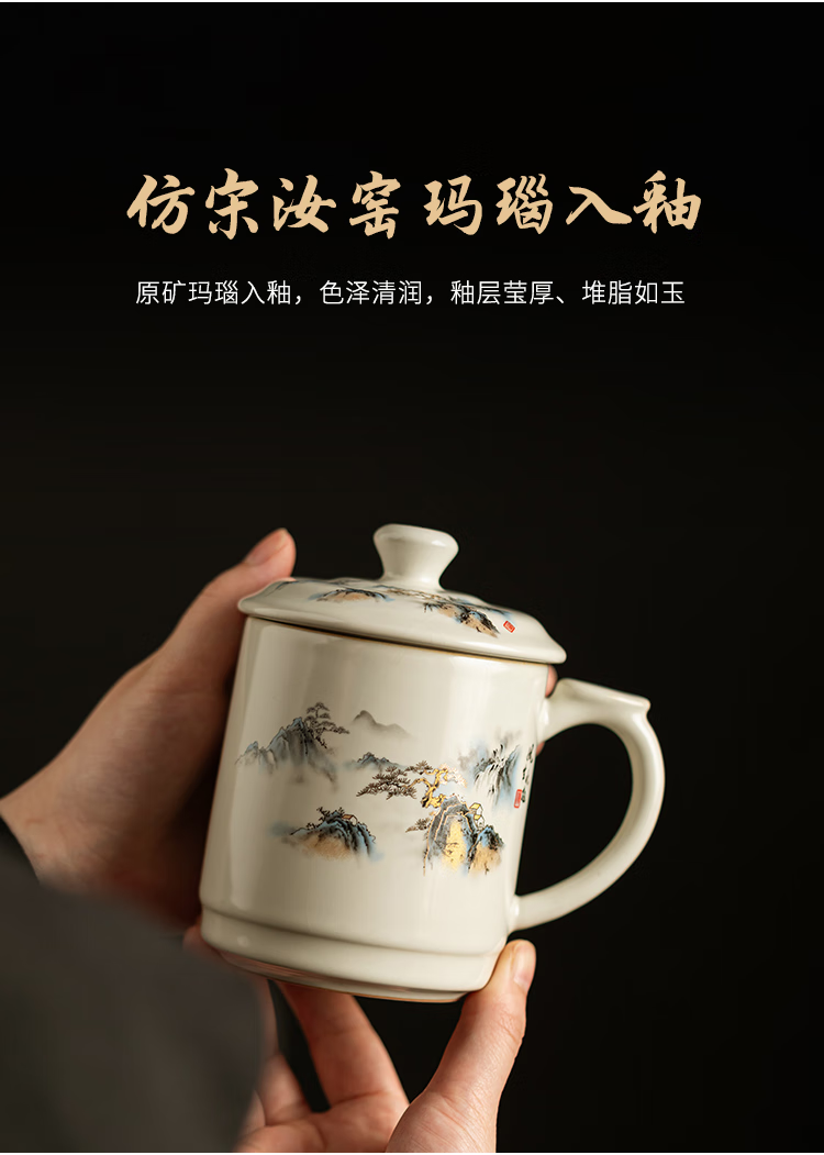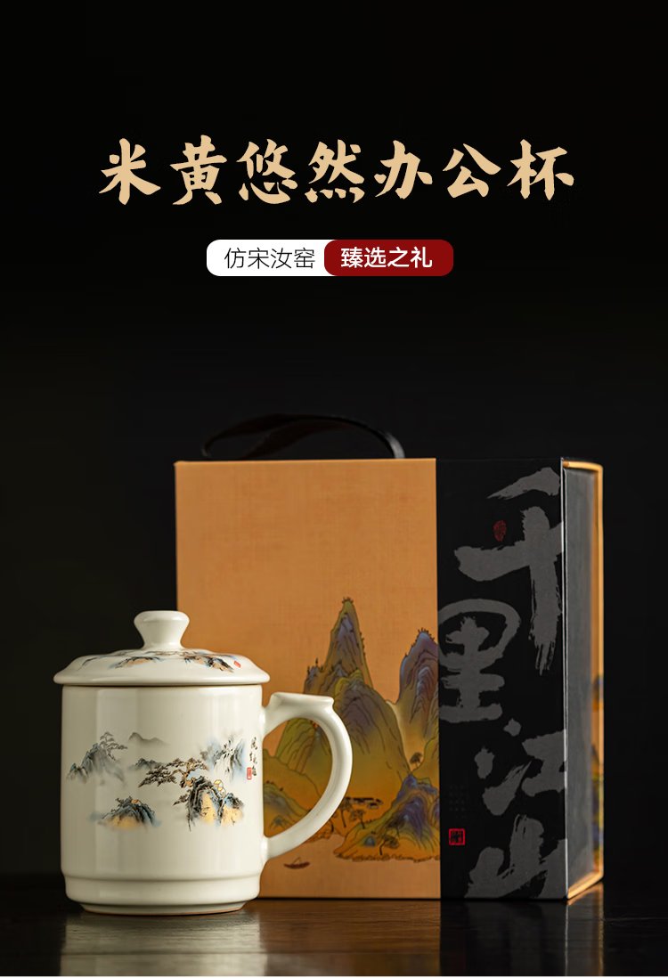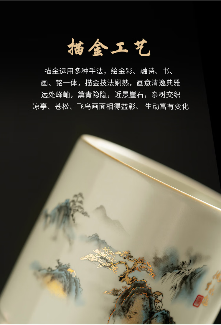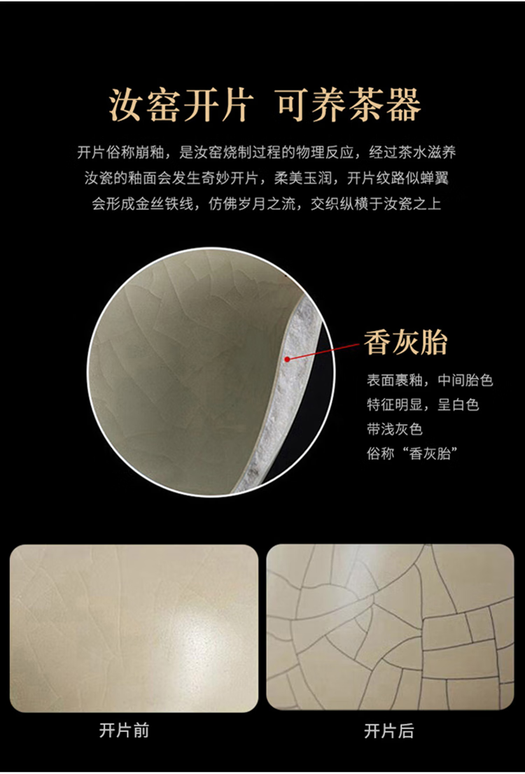 仿宋汝窑 质感细腻 色泽清润;开片纹路 描金工艺 古色古香;国风礼盒 经典器型 送礼实用