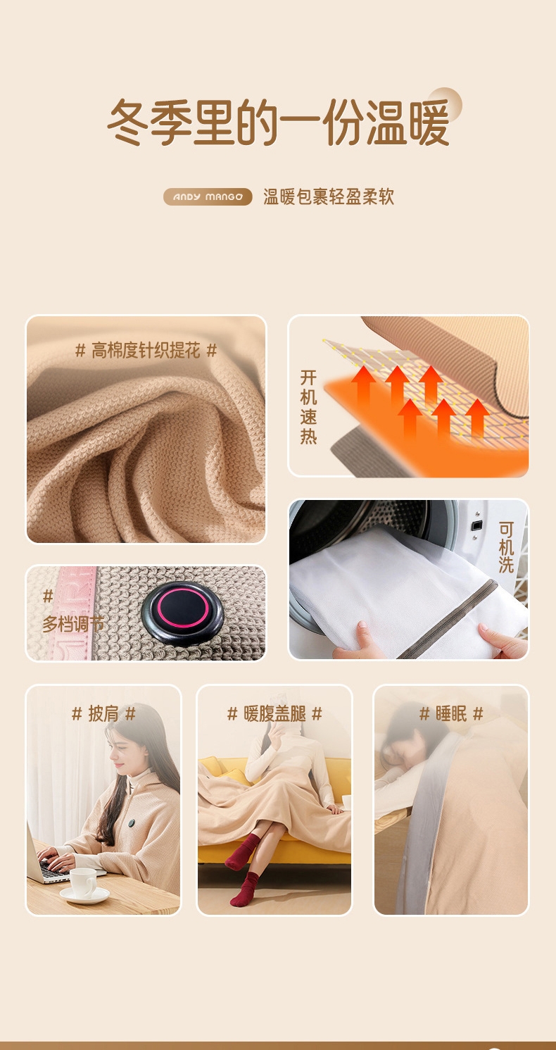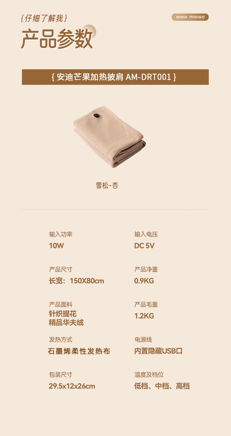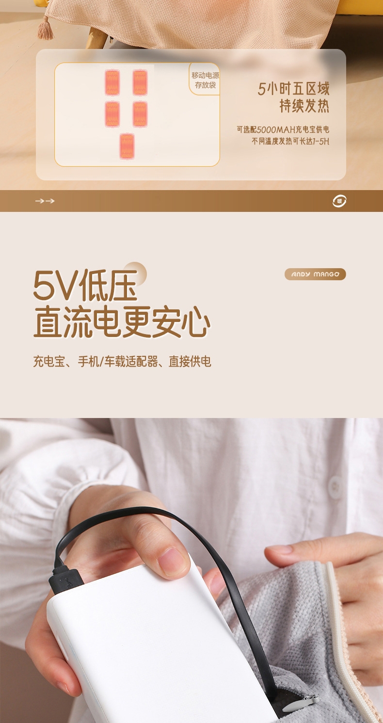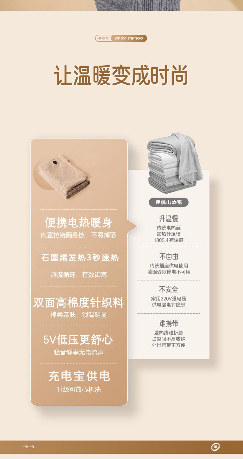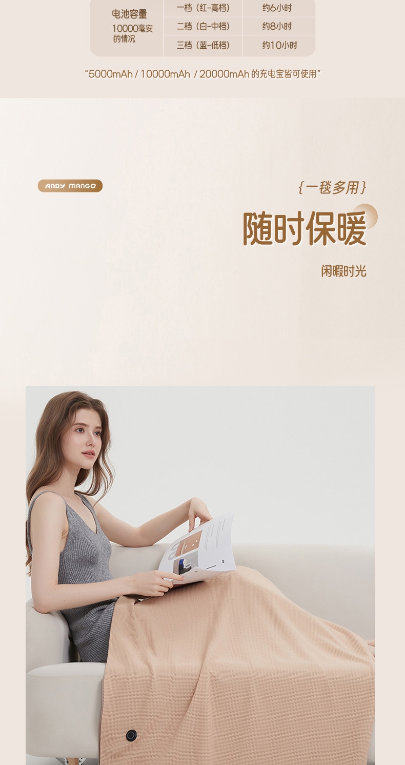 配置:加热披肩*1,说明书*1,10000毫安充电宝*1