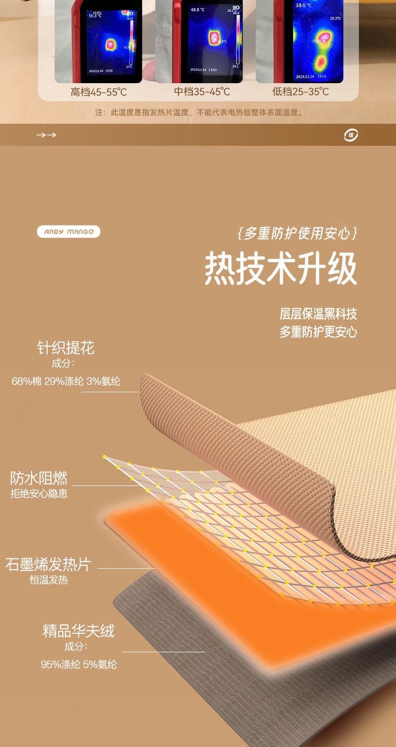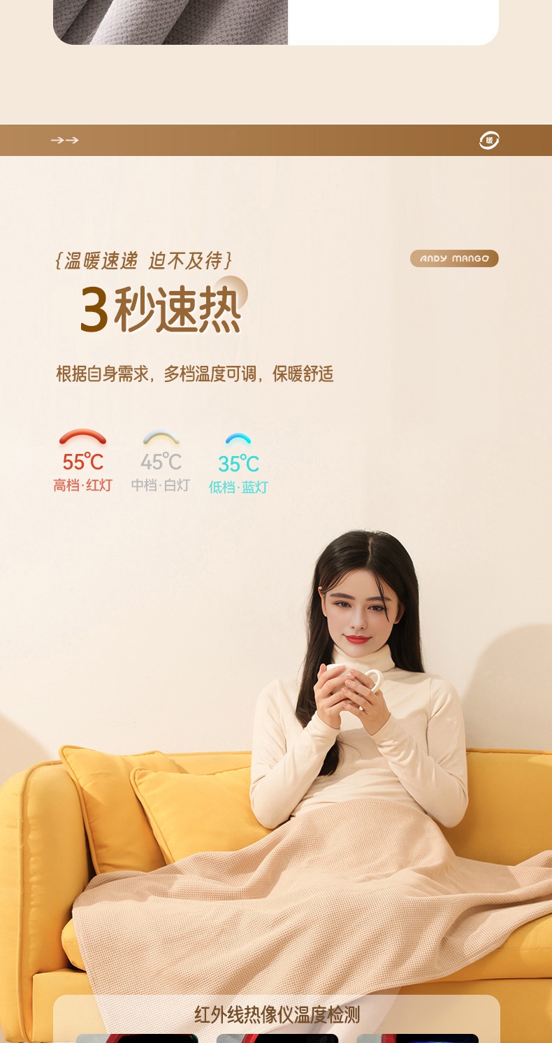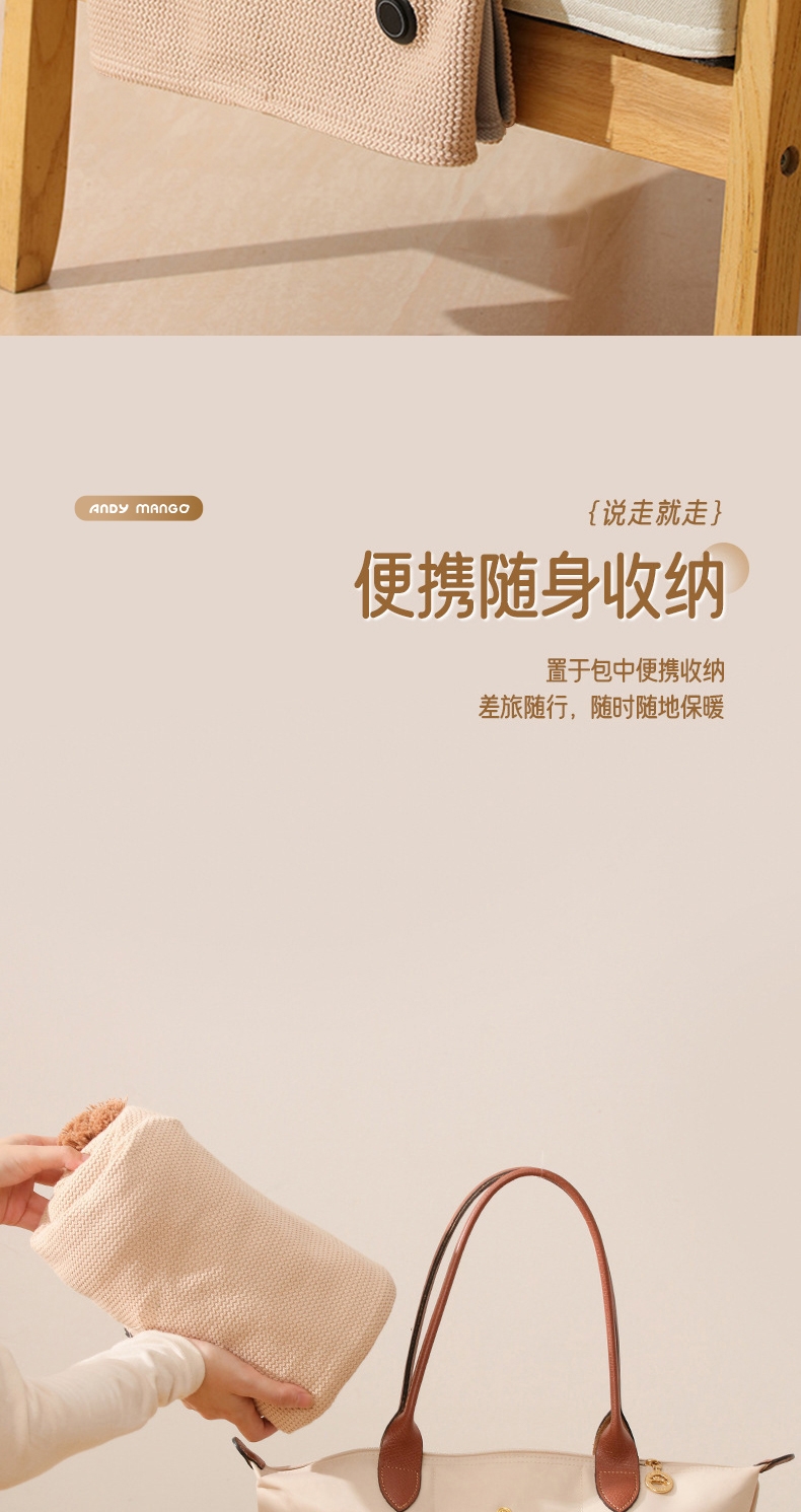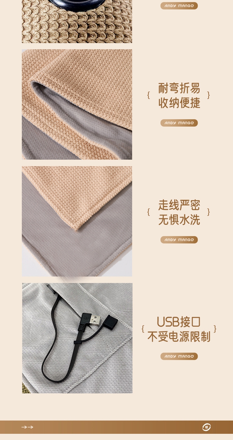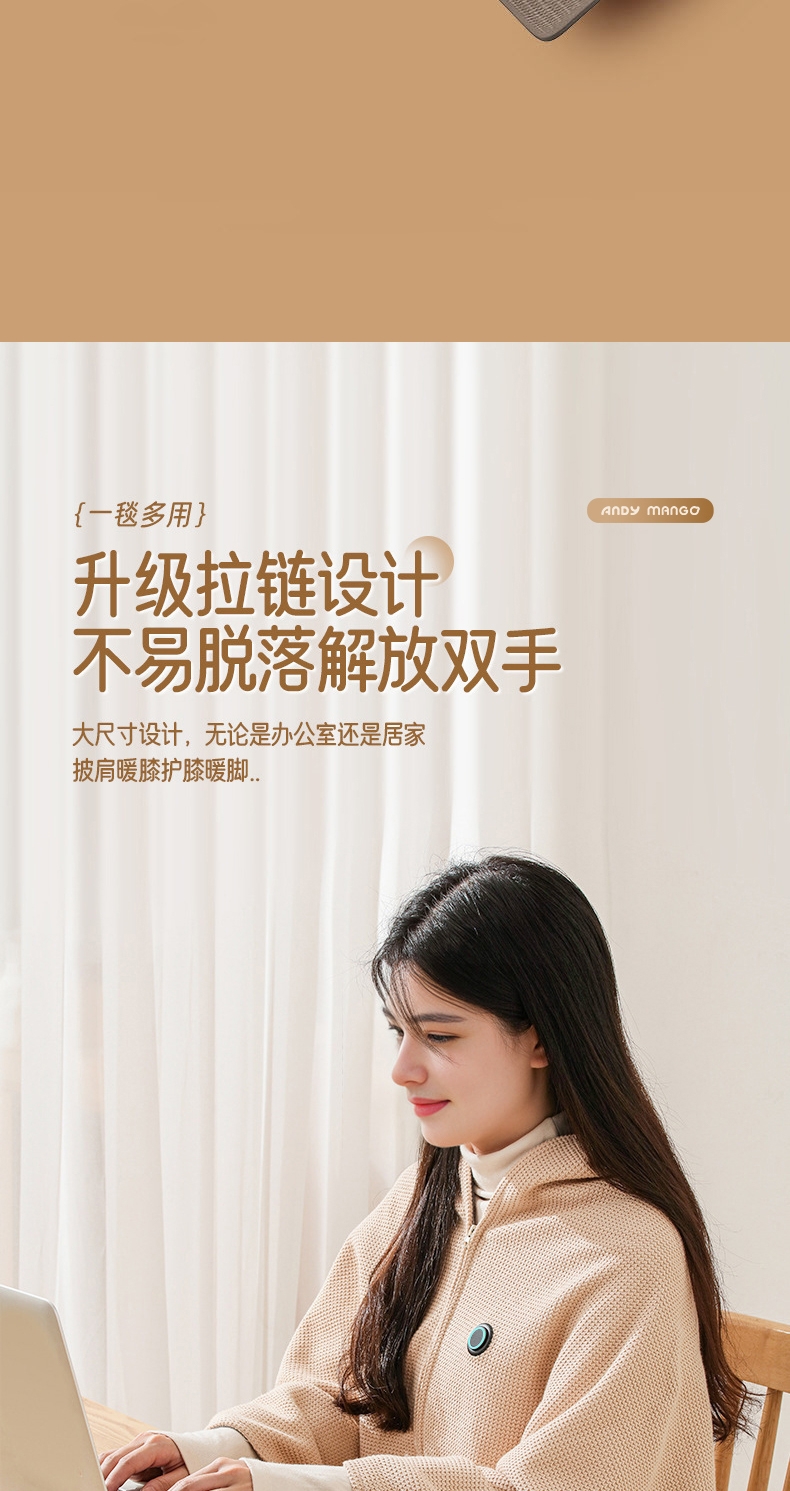 双面高棉度针织料织造,无甲醛等有害物质;3秒速热,根据自身需求,多档温度可调;保暖舒适 升级拉链设计,不易脱落解放双手;可拆卸水洗,柔软可折叠,便携随身收纳