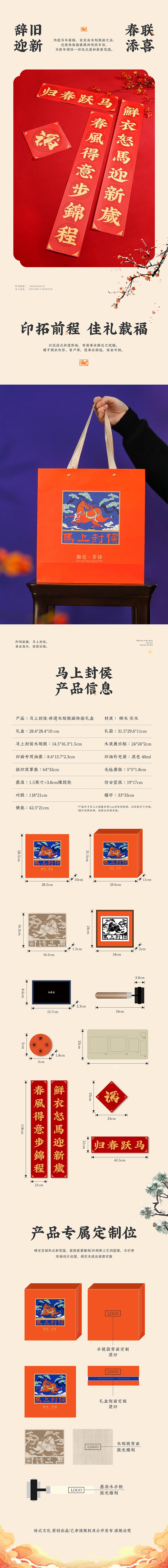 原创主题图案,寓意“马上封侯,前程似锦”;木刻版甄选榉木材质,木质坚实耐用;拓印工具一应俱全,开箱即可体验;内配马年春联,为新年增添一份仪式感和新春氛围;搭配实木相框,沉稳大气,适配多种家居风格