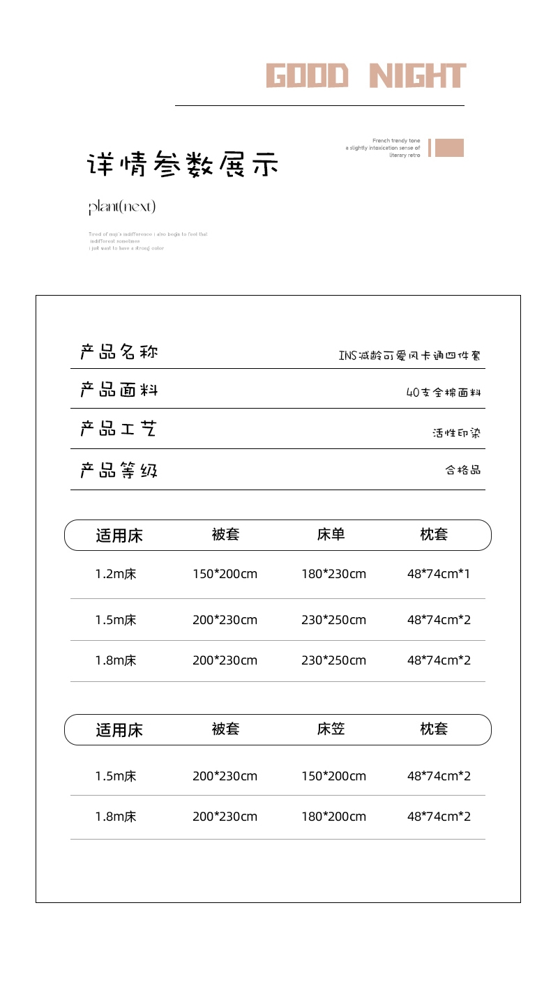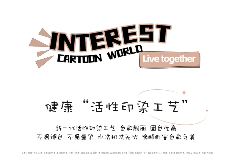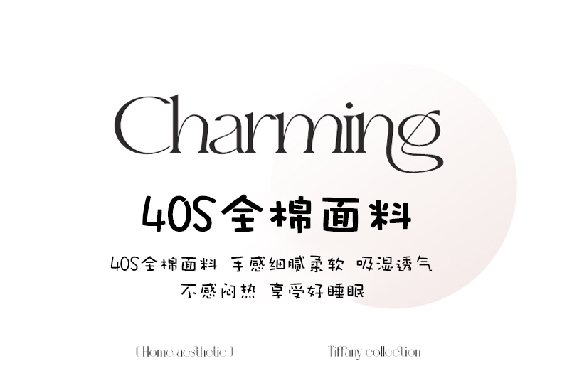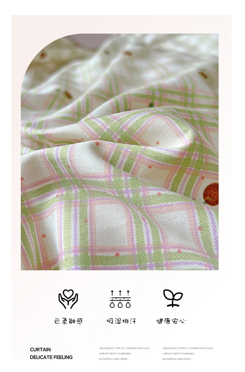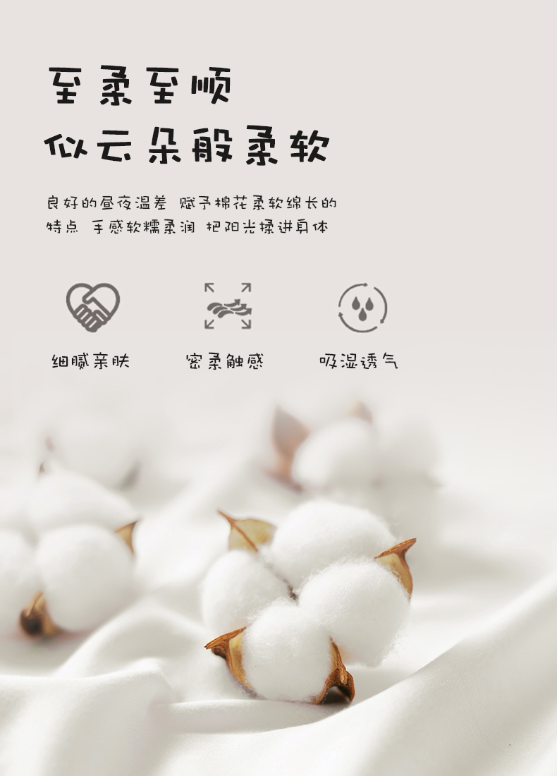 40S全棉面料 手感细腻柔软 吸湿透气享受好睡眠;良好的昼夜温差 赋予棉花柔软绵长的特点 手感软糯柔;新一代活性印染工艺 色彩靓丽 固色度高不易褪色
