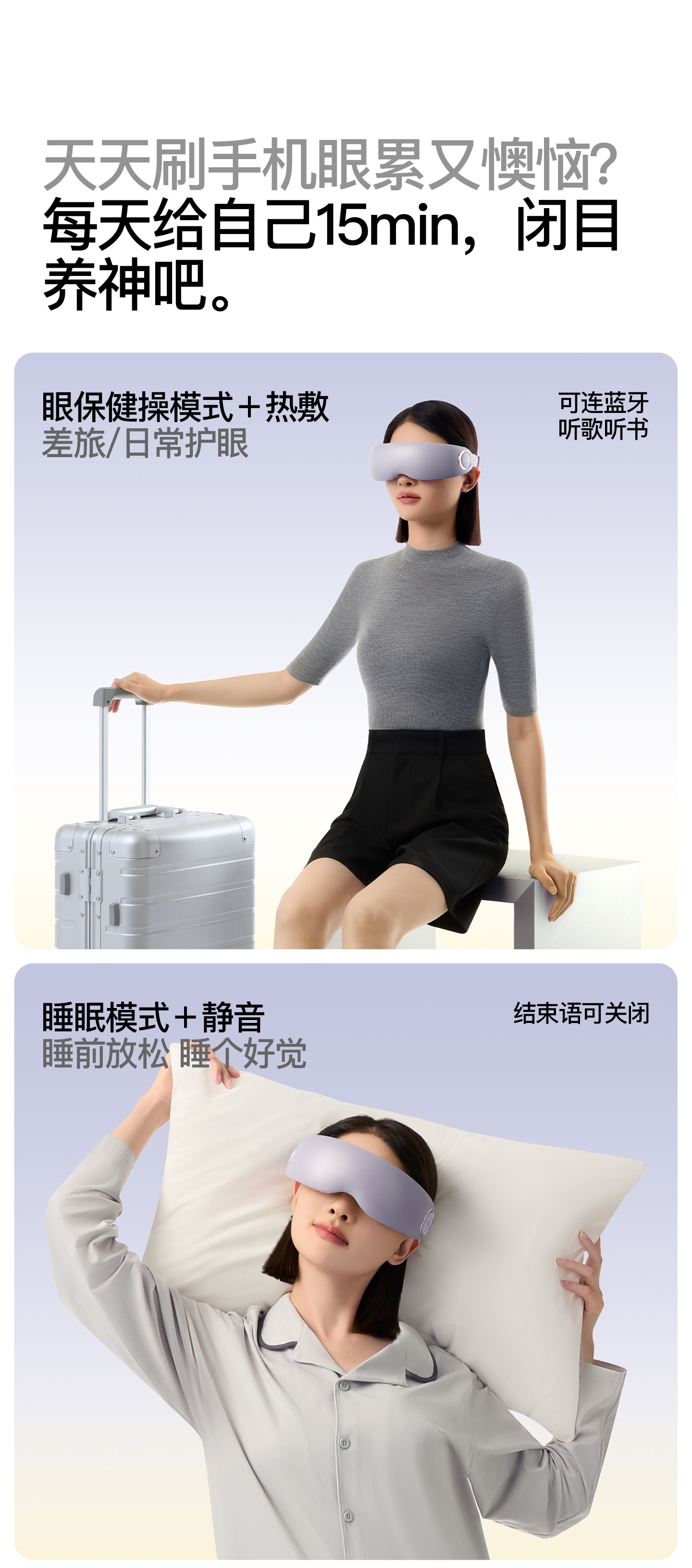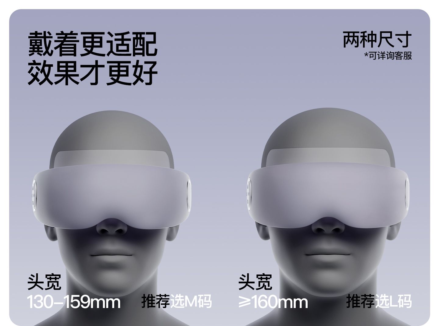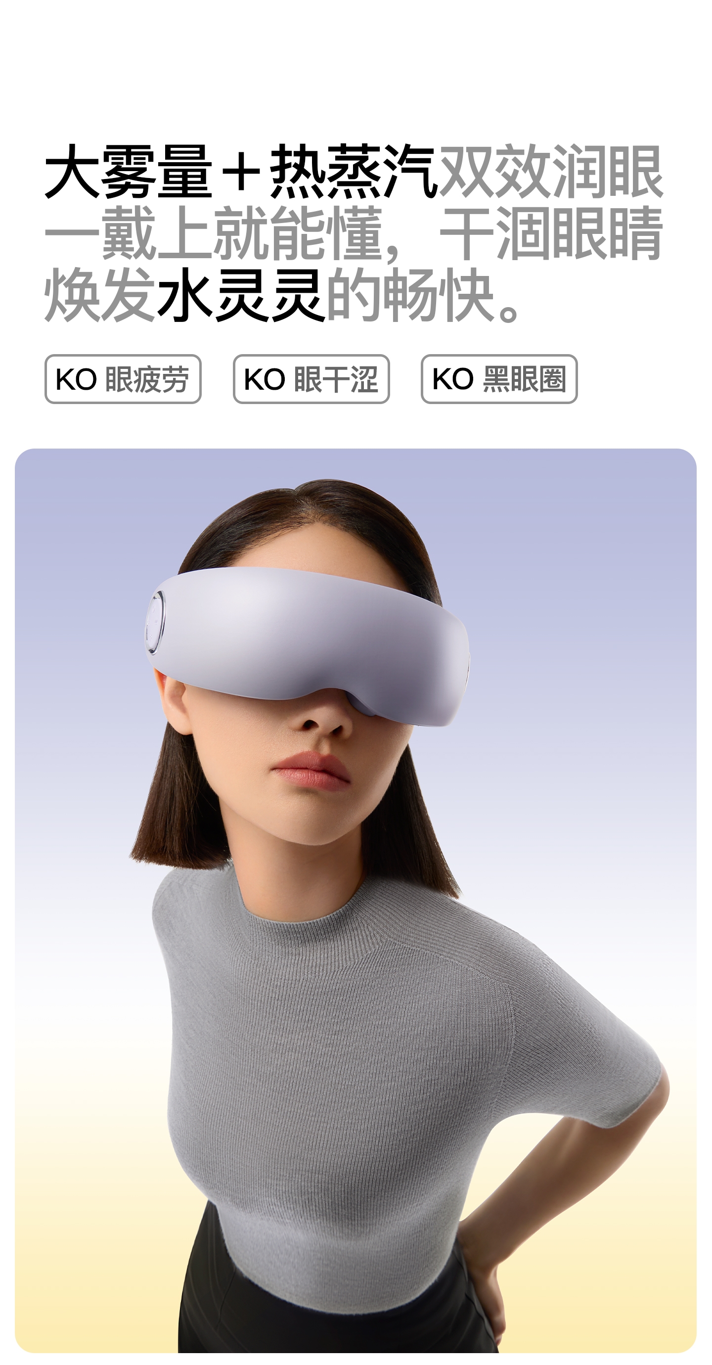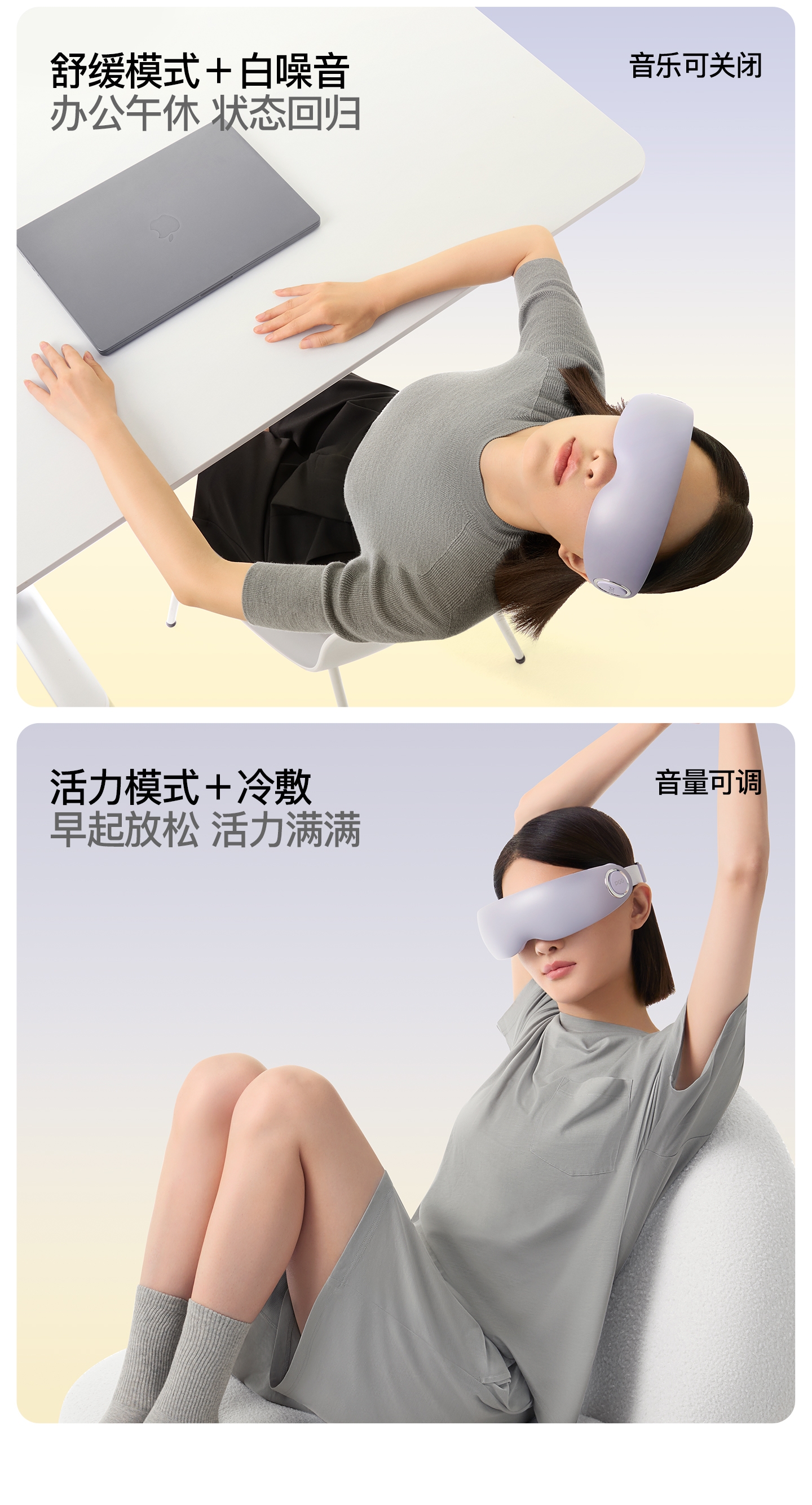 3大热蒸汽系统3档温度:38/42/45℃温度可关;双边平衡绑带,佩戴稳,不易掉,可拆洗弹性绑带;仿生建模般贴合,不压眼球鼻梁,午睡不花妆
