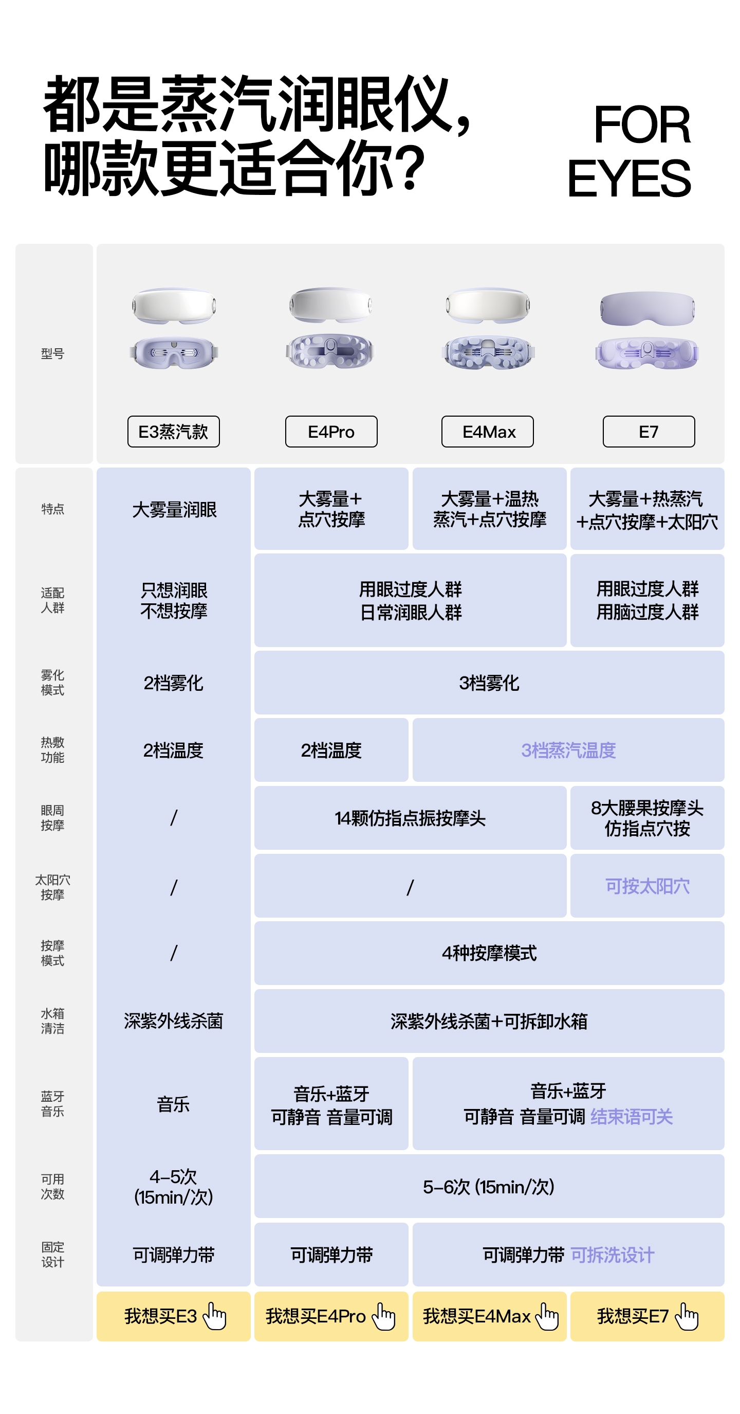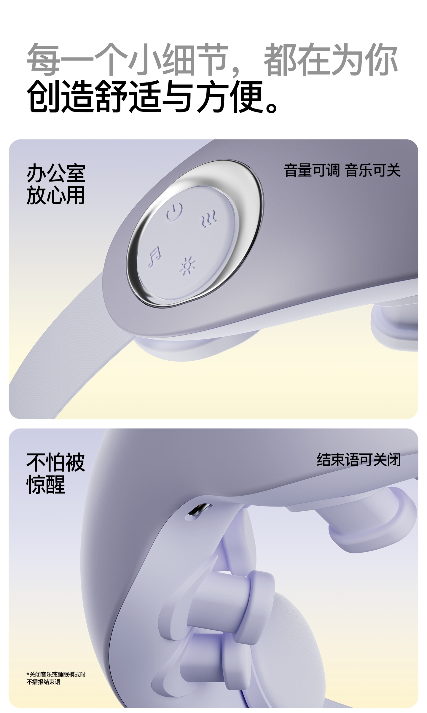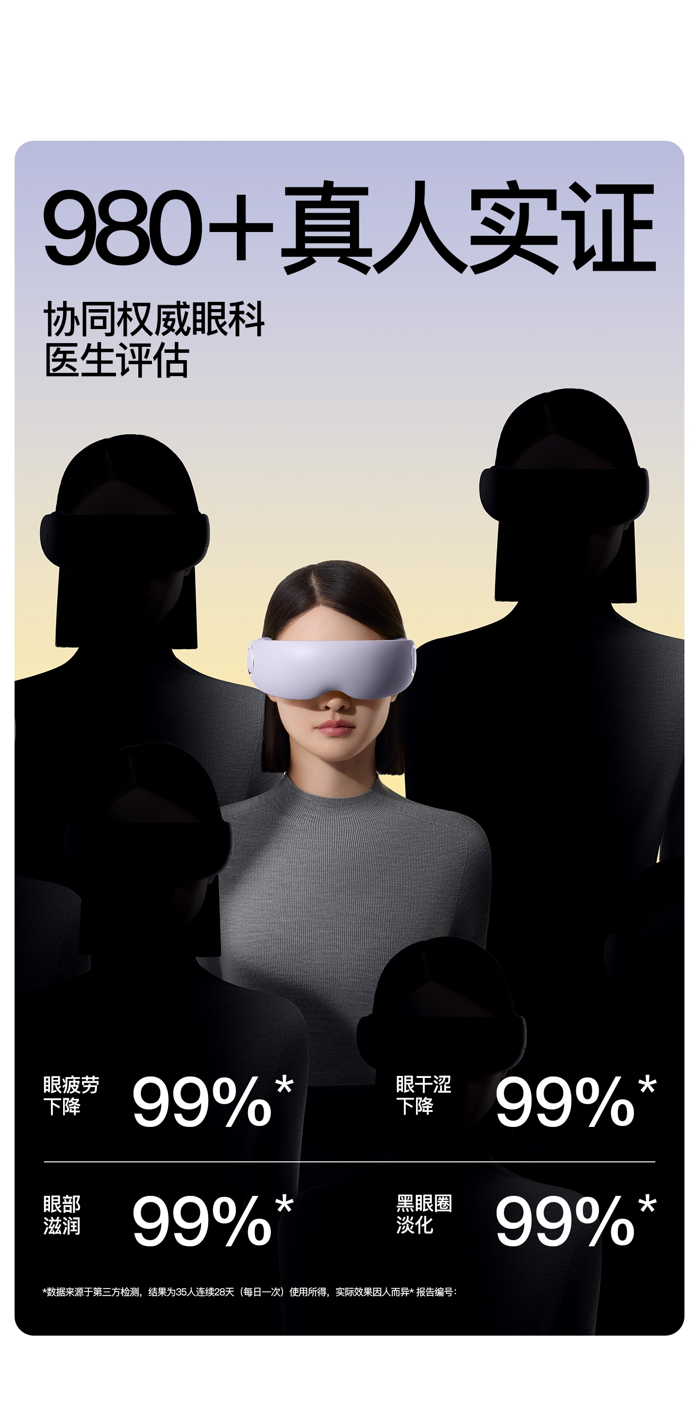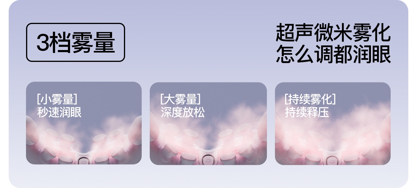 3大热蒸汽系统3档温度:38/42/45℃温度可关;双边平衡绑带,佩戴稳,不易掉,可拆洗弹性绑带;仿生建模般贴合,不压眼球鼻梁,午睡不花妆