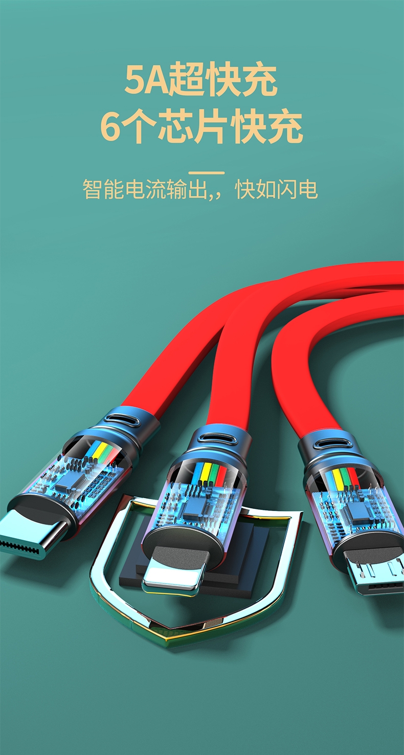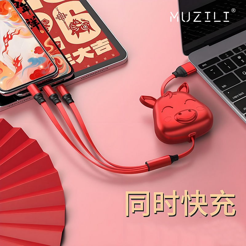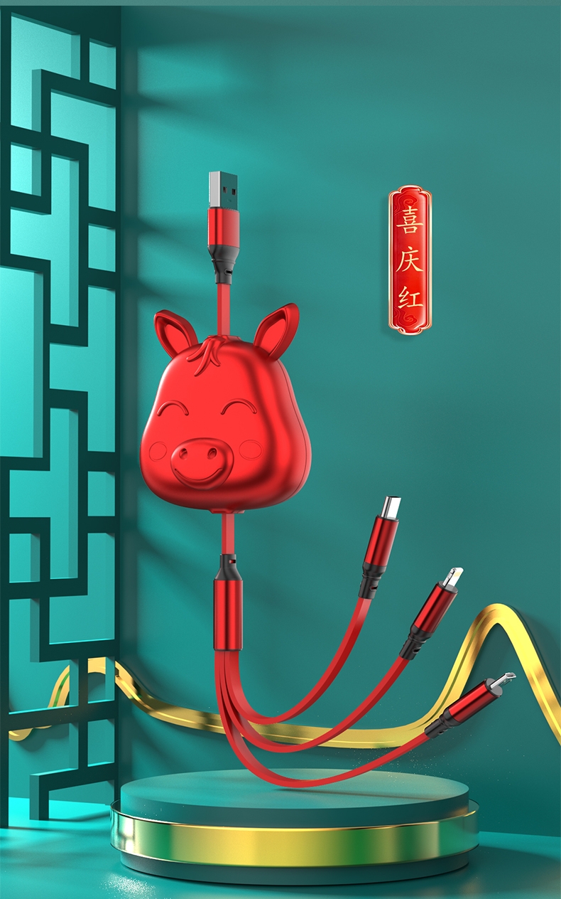 66W超级快充,充电更快;马年元素造型,一体成型充电头;三种接口满足各种手机;1.2米长度设计,使用方便;编织线耐磨耐用,不易折断