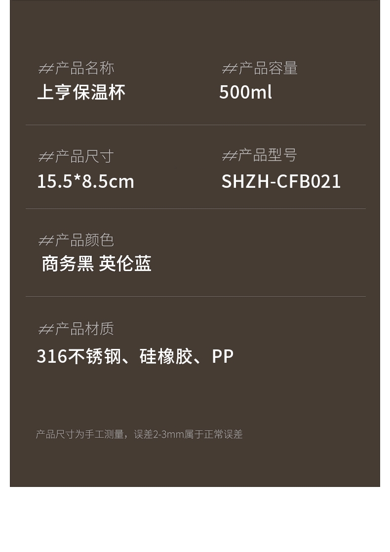 上亨 商务数显保温杯500mlSHZH-CFB021