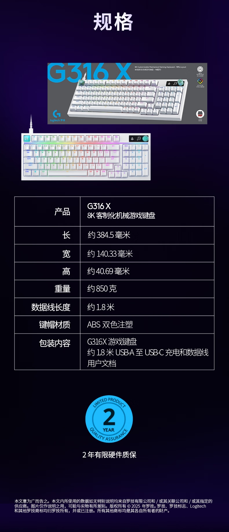 罗技 8K客制化有线游戏键盘G316X闪逸龙