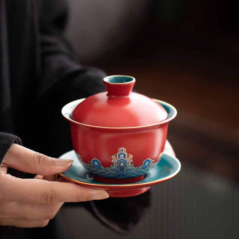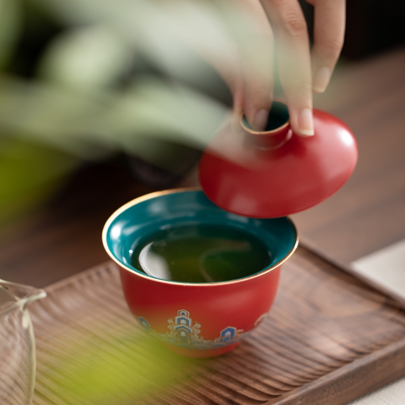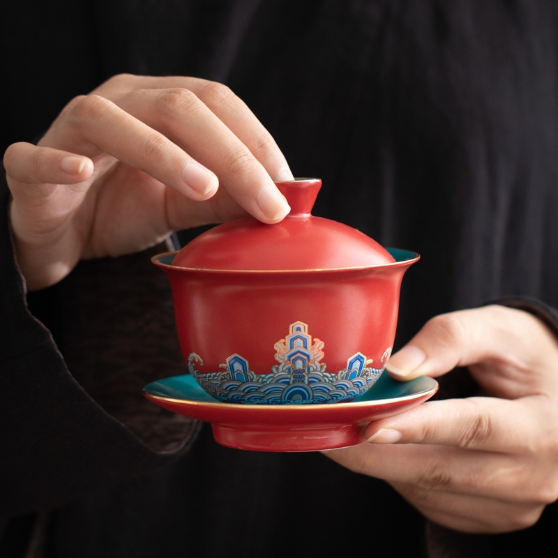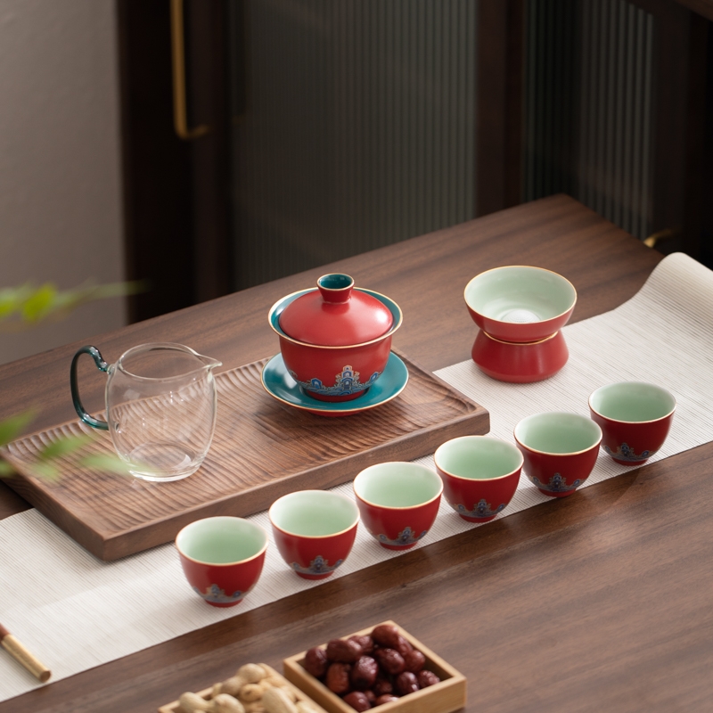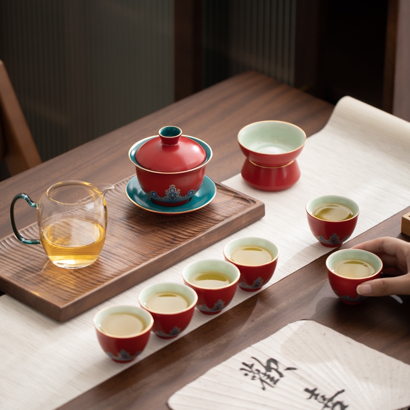 配置:1盖碗 6杯 1公道杯 1茶托茶漏 1礼盒手提袋