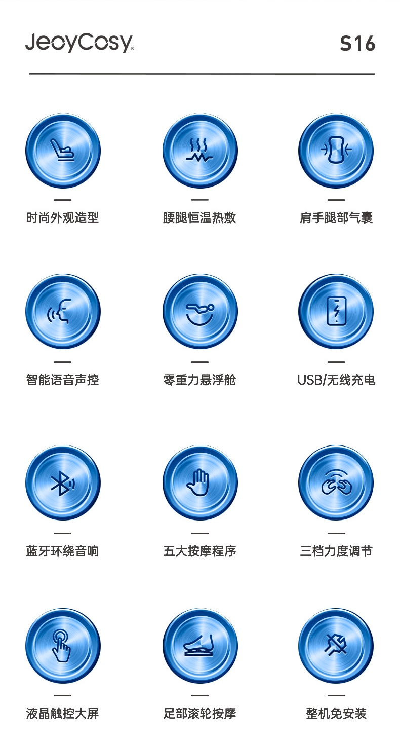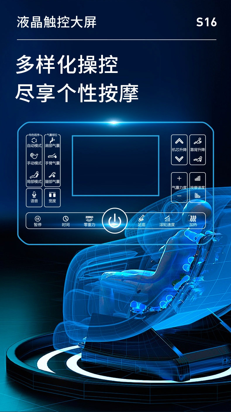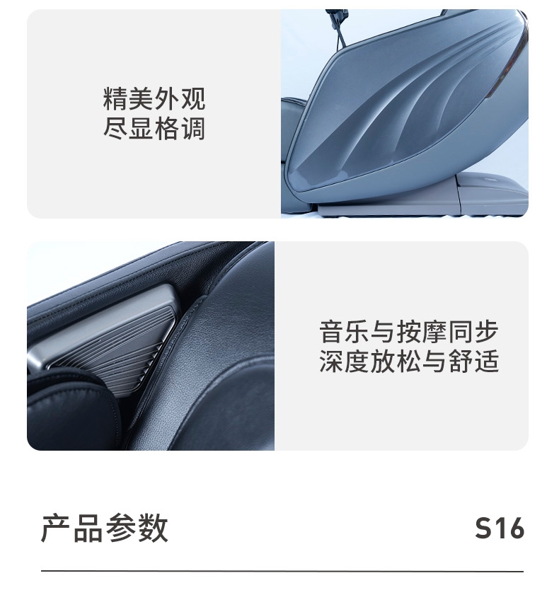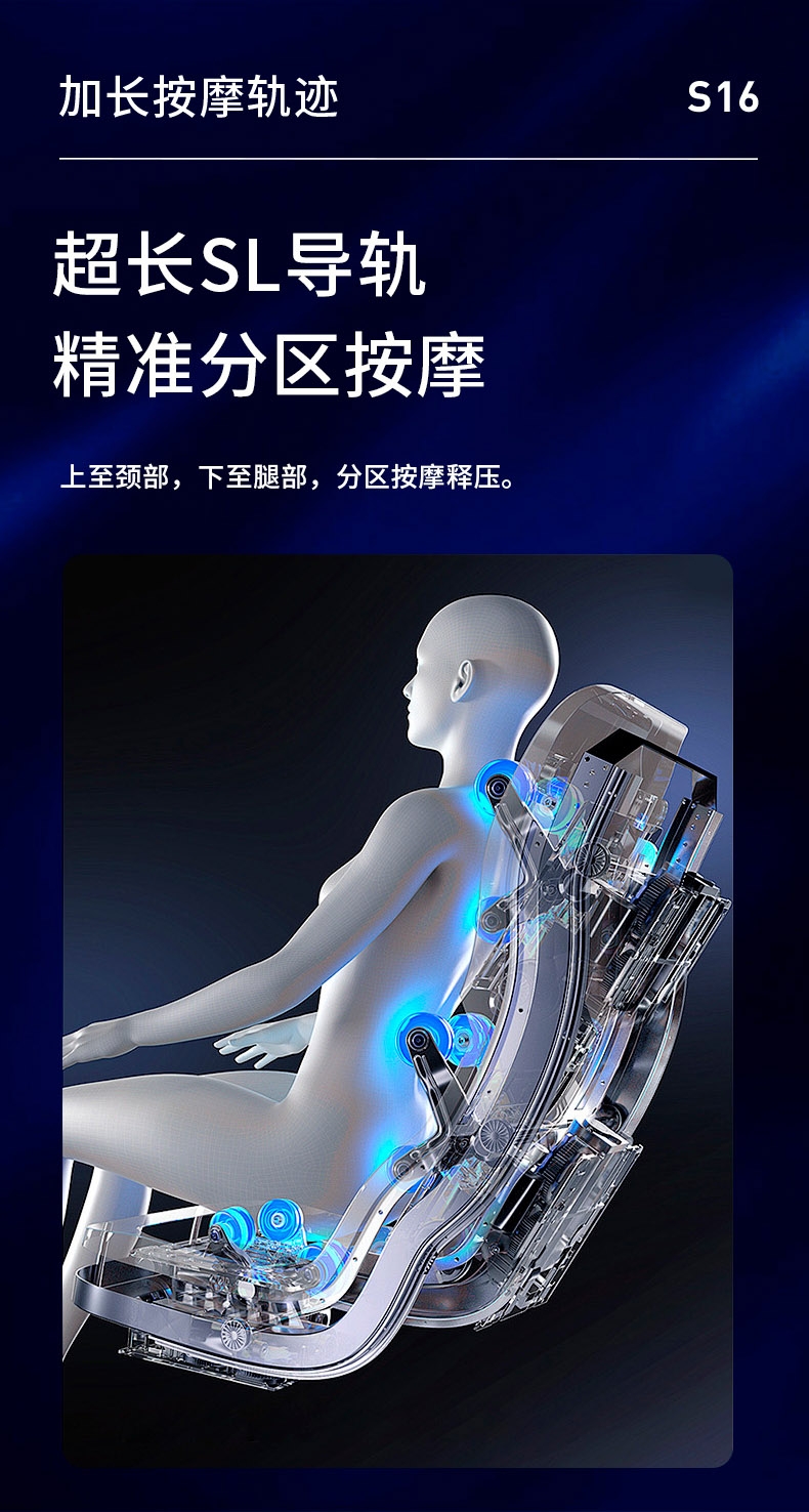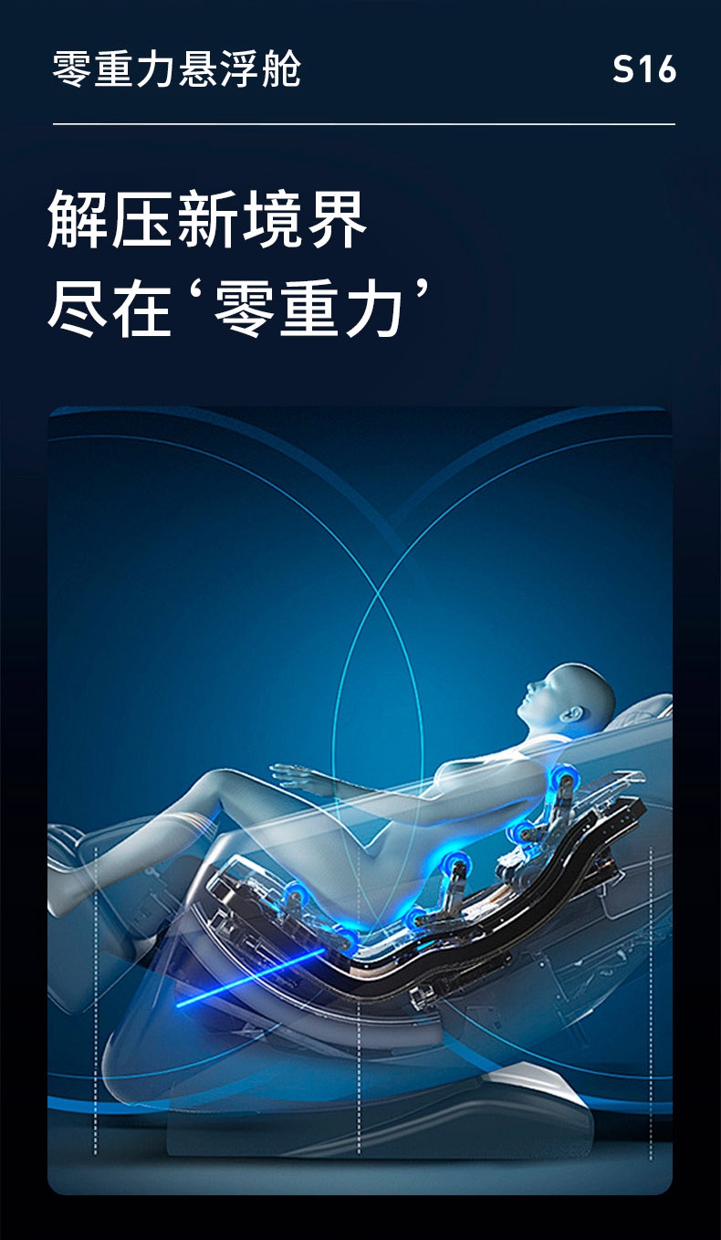 智能语音操控;零重力悬浮助眠,释放身体压力;SL导轨,从颈到臀部大面积按摩