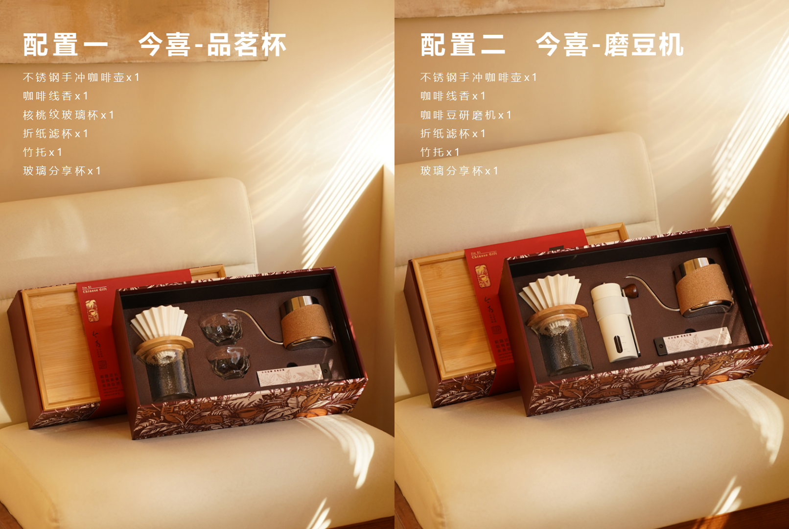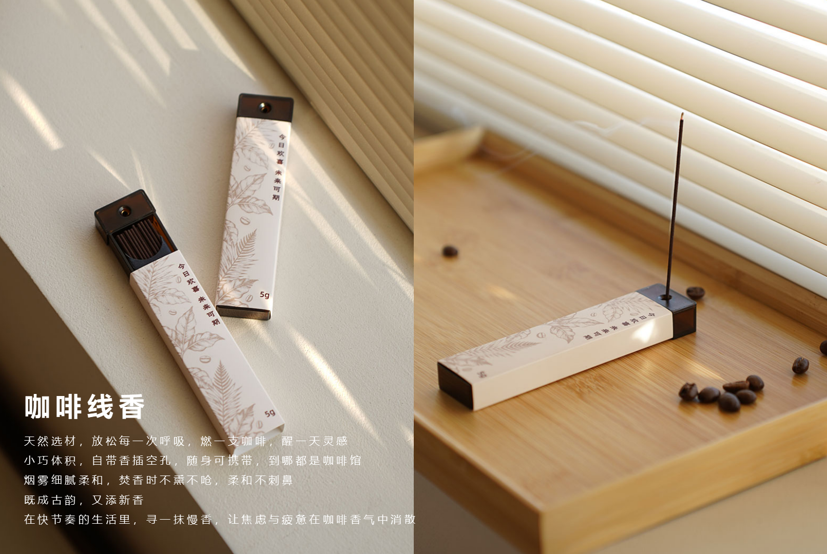 今喜咖啡礼,实用得体的商务伴手礼;热烈红与温润竹邂逅,简约白与复古植物绘碰撞;咖啡线香,燃一支咖啡,醒一天灵感