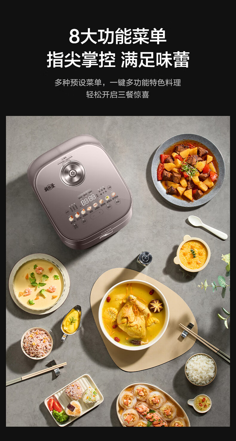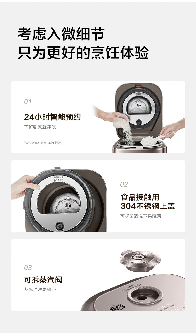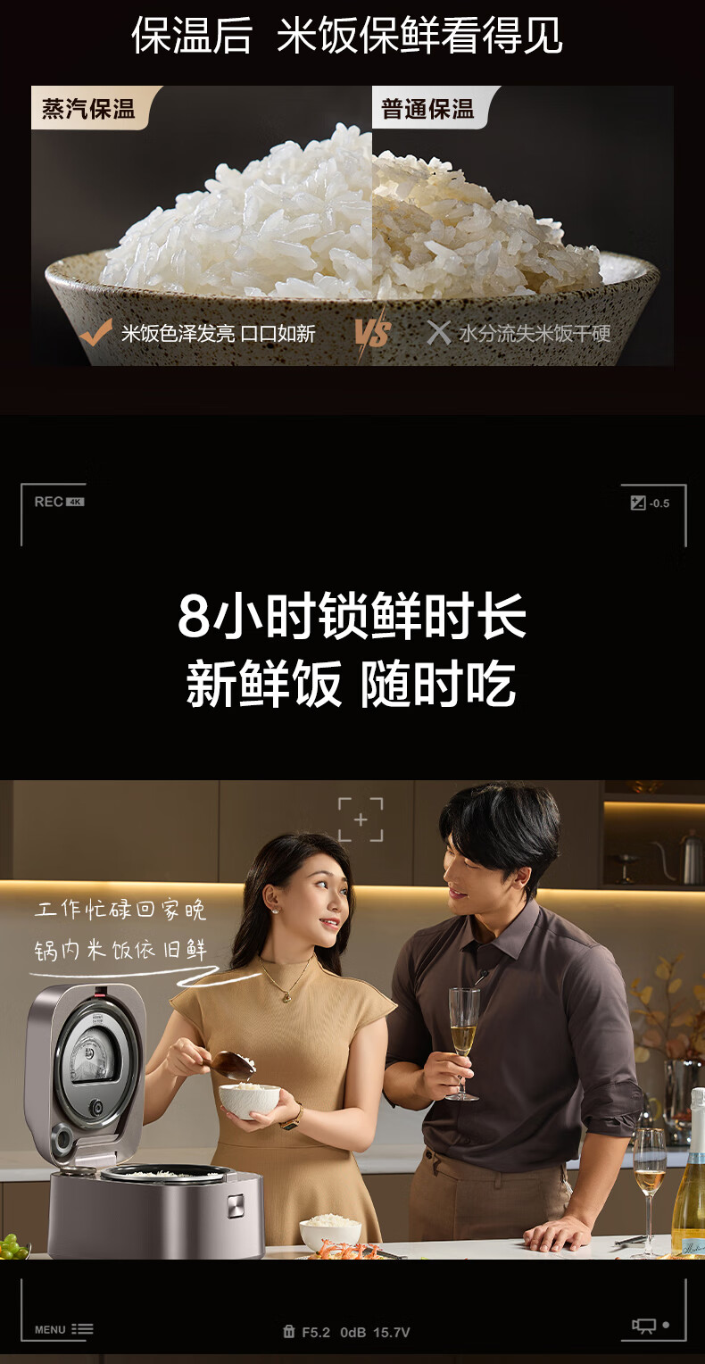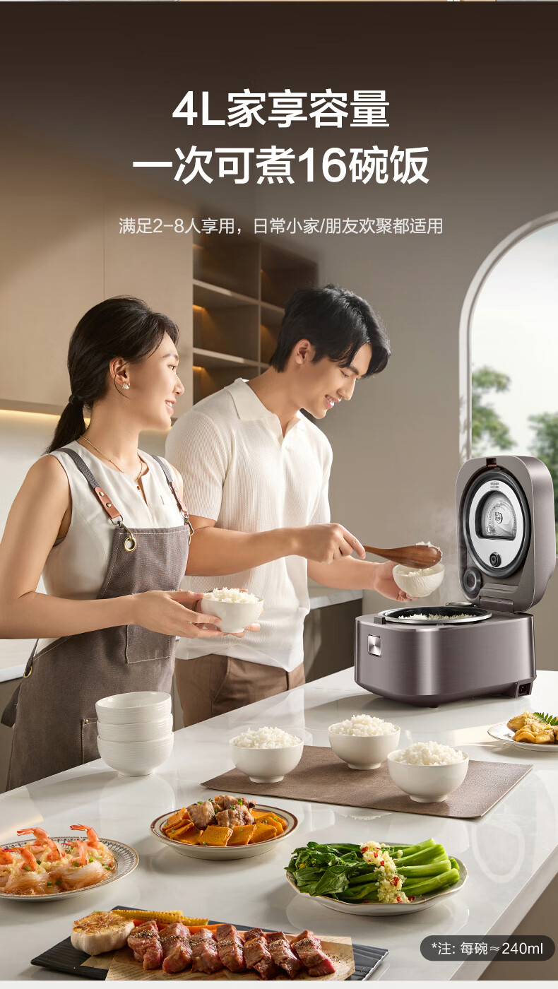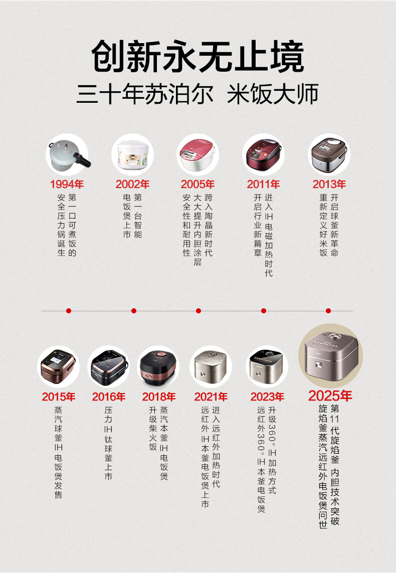 4.0mm旋焰釜,10年耐用,1级不粘;旋焰炽导技术,米饭活粒烹煮;远红外穿透加热,透芯增香