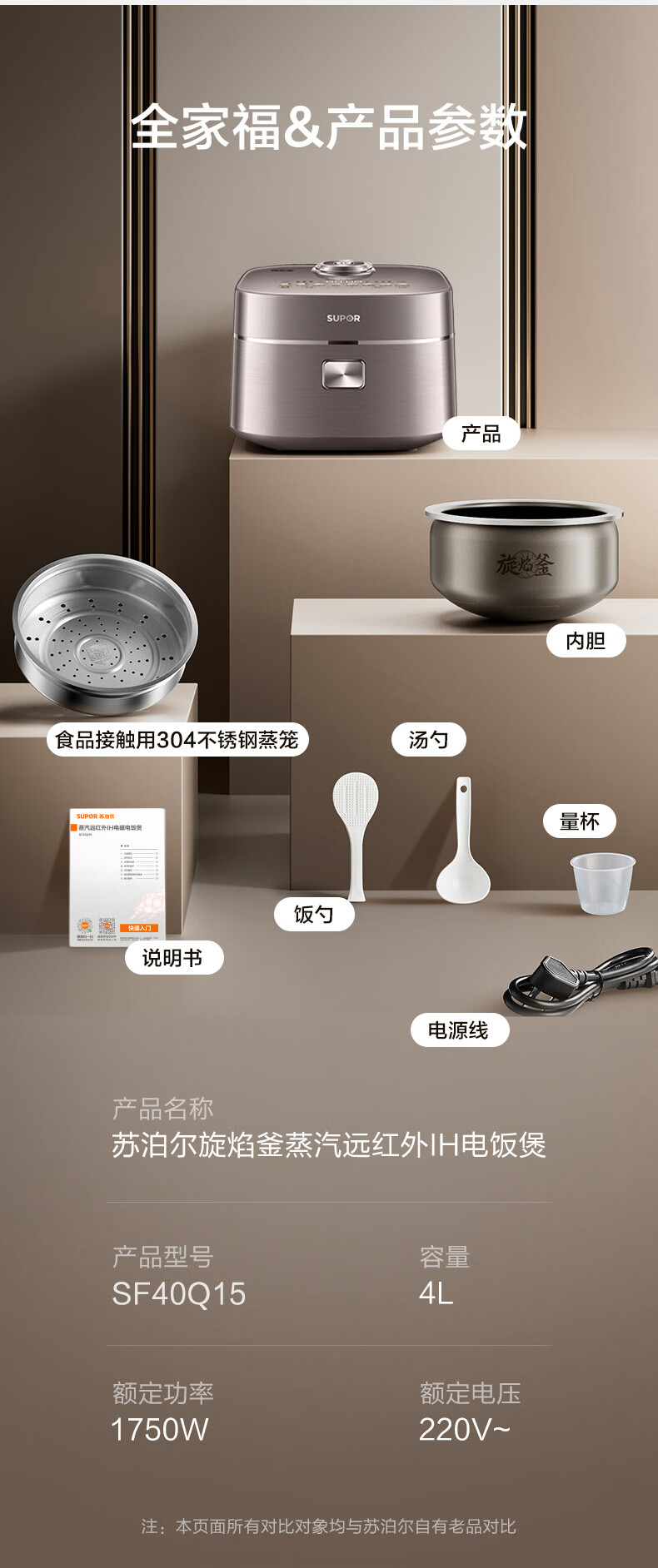 苏泊尔 蒸汽远红外旋焰釜电饭煲SF40Q15