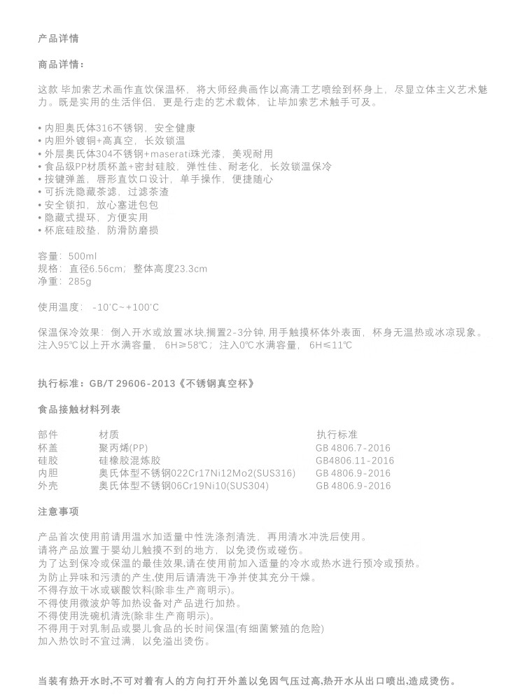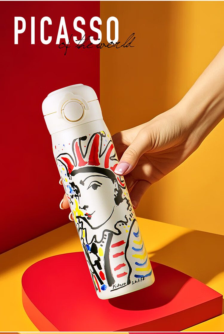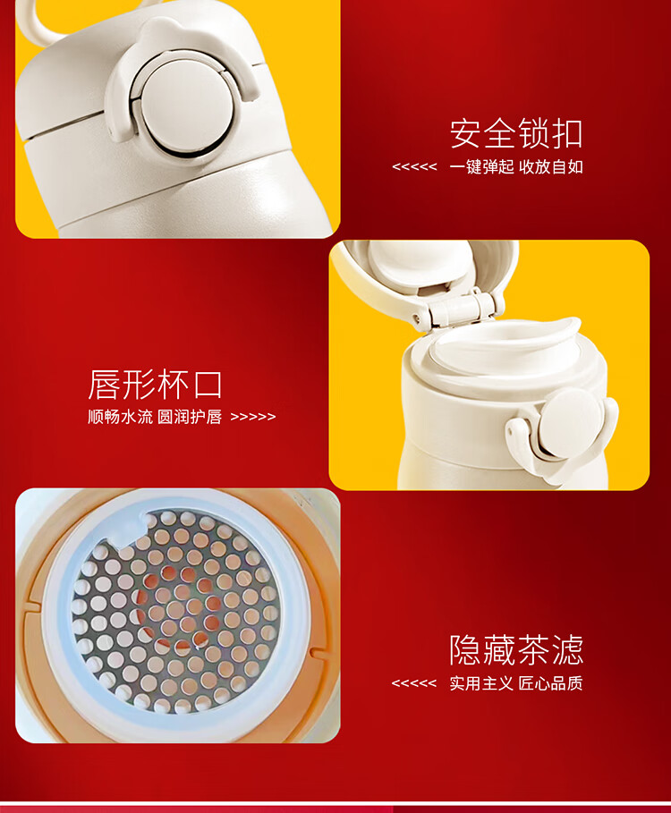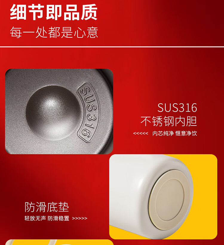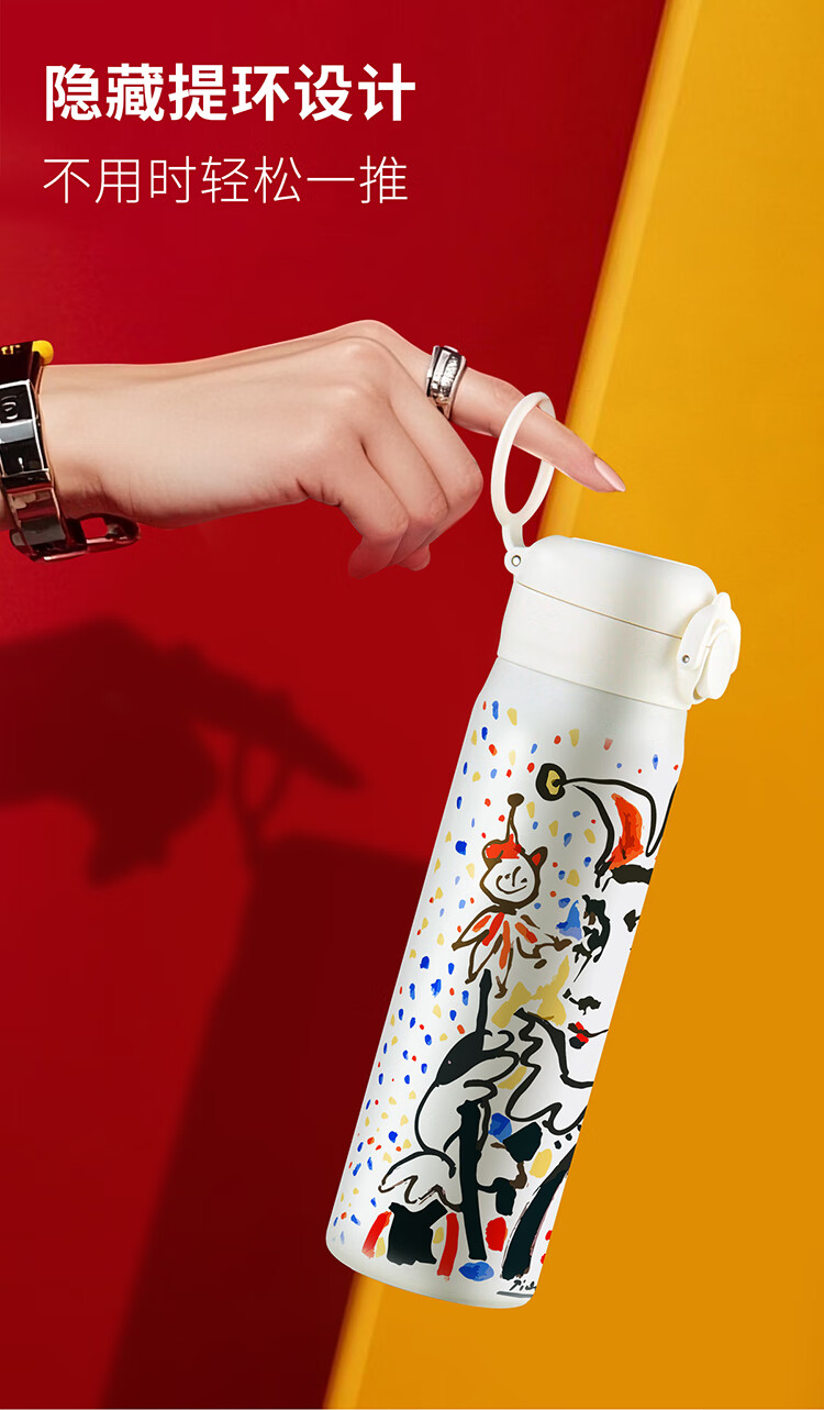 独特的杯盖,隐藏提环设计;彩盒包装;316不锈钢内胆抽真空设计