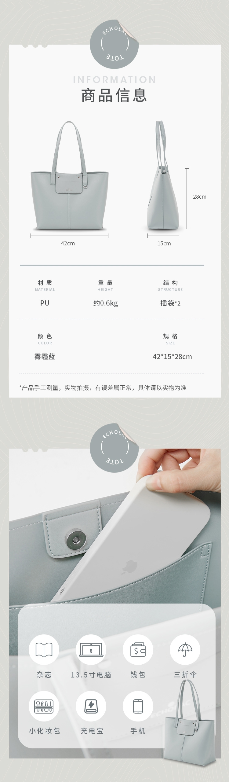 爱可乐 ECHOLAC托特包浅蓝色HB2310-T