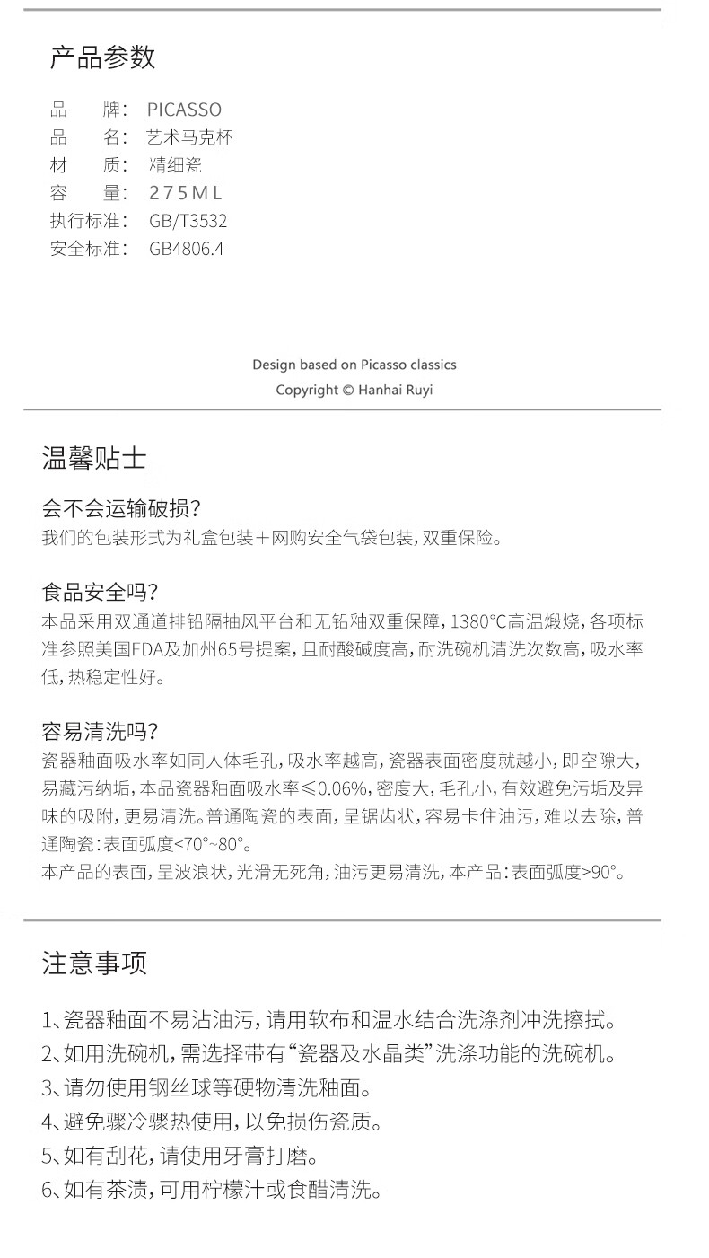 毕加索 艺术马克杯1杯1勺P20-XC02