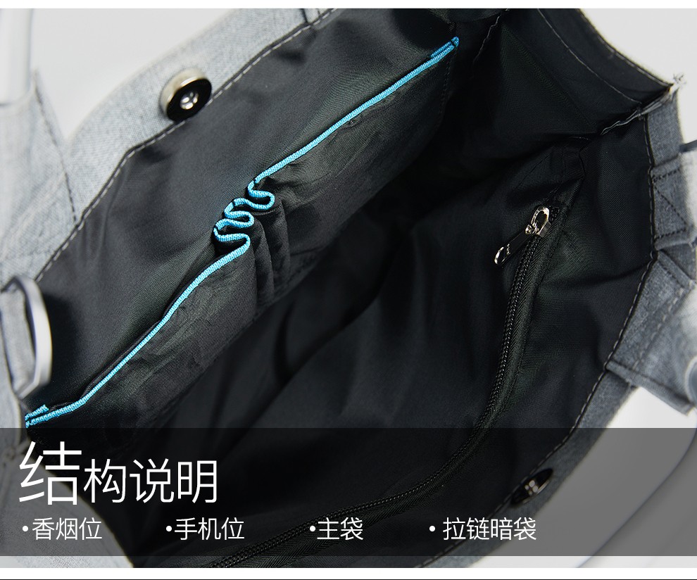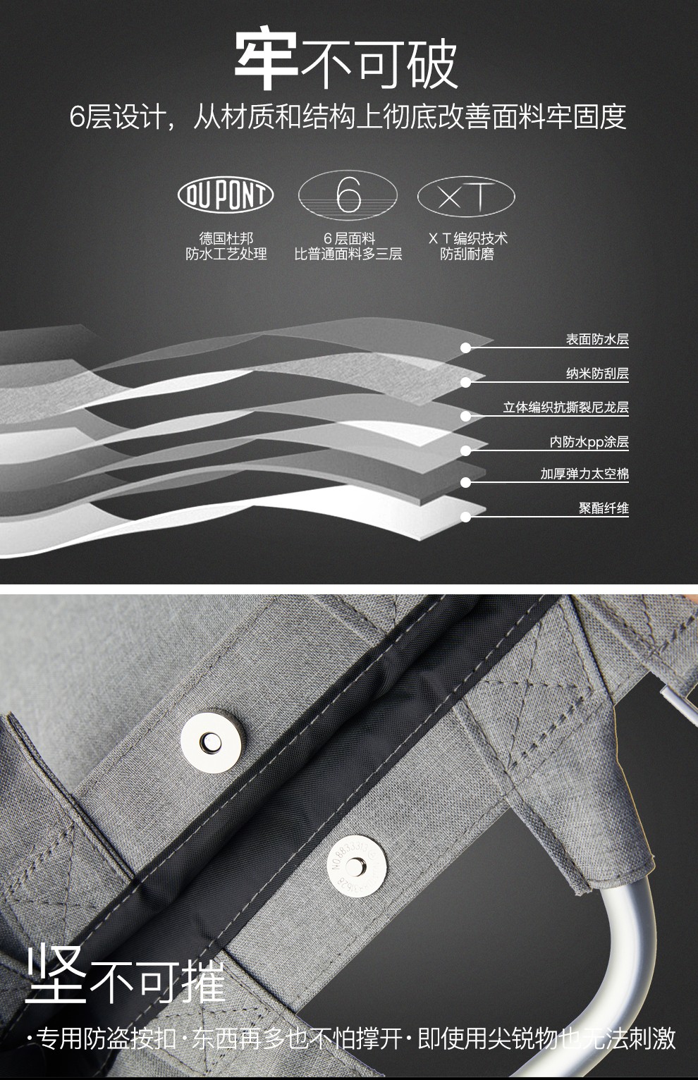 防泼水 · 抗撕裂 精致LOGO,彰显质感;高品质尼龙面料,耐磨耐用,配备可调节肩带;可手提可斜跨,多种背法,随意选择