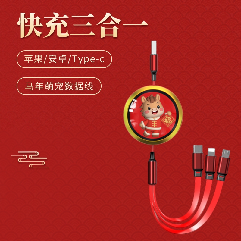精美生肖造型 送礼佳品; 5A超级快充 充电更快;一秒收纳 五档伸缩