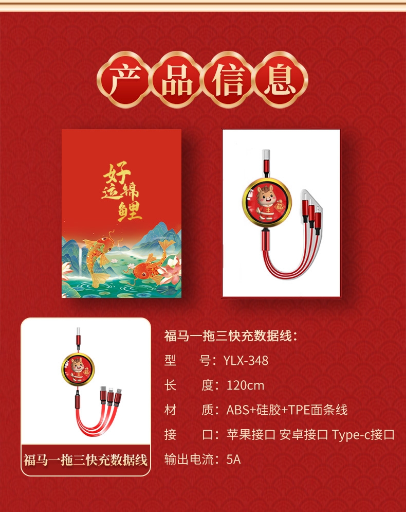 遥里逊 好运锦鲤快充数据线数码礼盒装YLX-348T