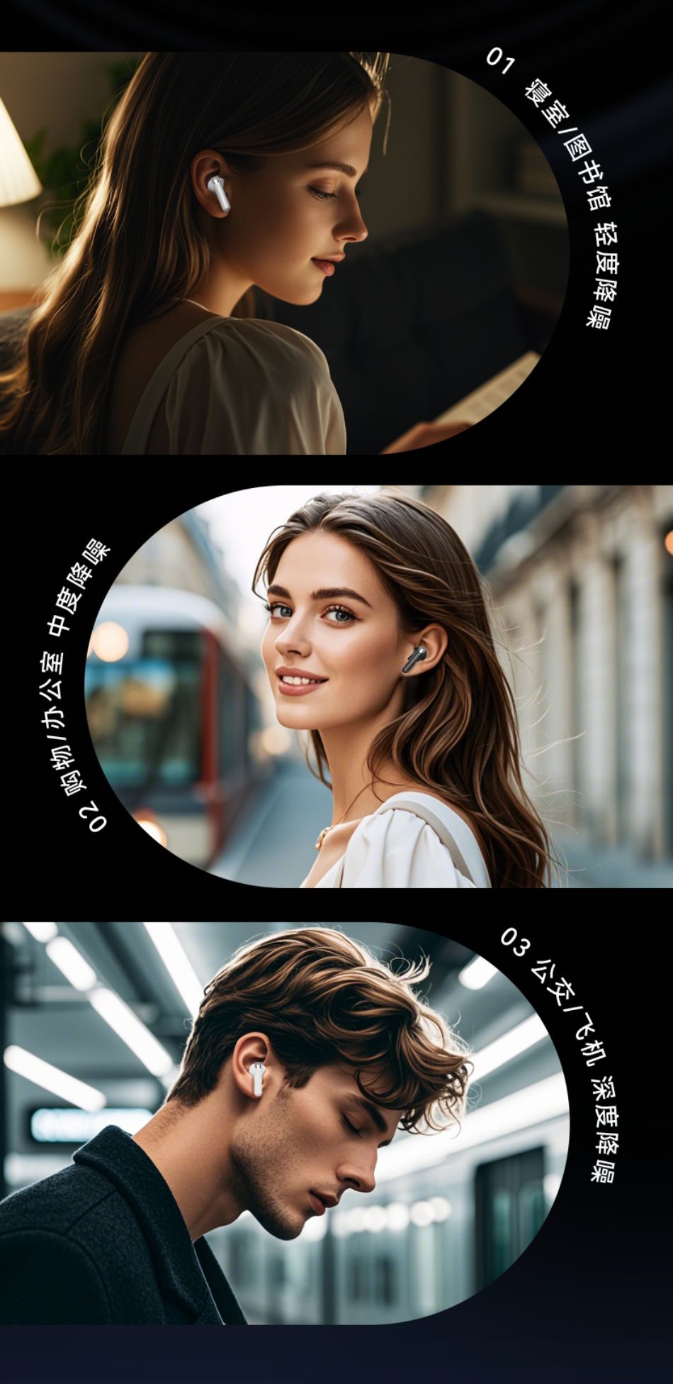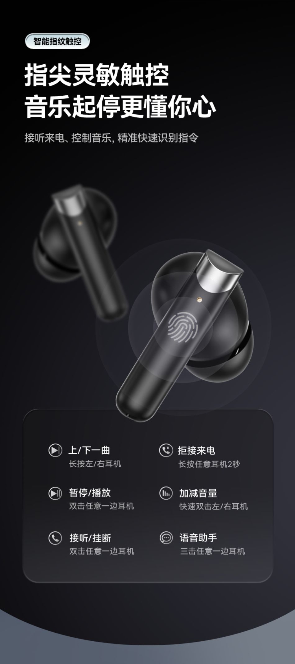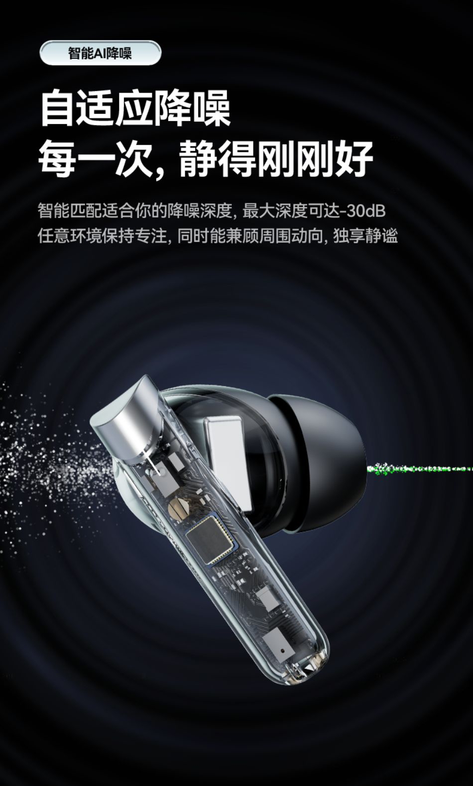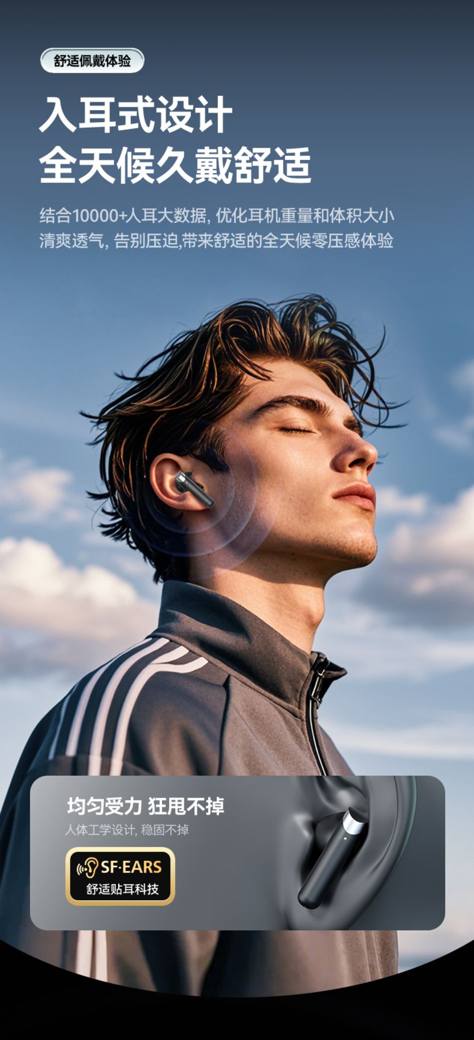 高配蓝牙5.4芯片 稳定高速不断连;智能电量数显 电量情况实时掌握;舒适入耳式佩戴 耳朵久戴不累