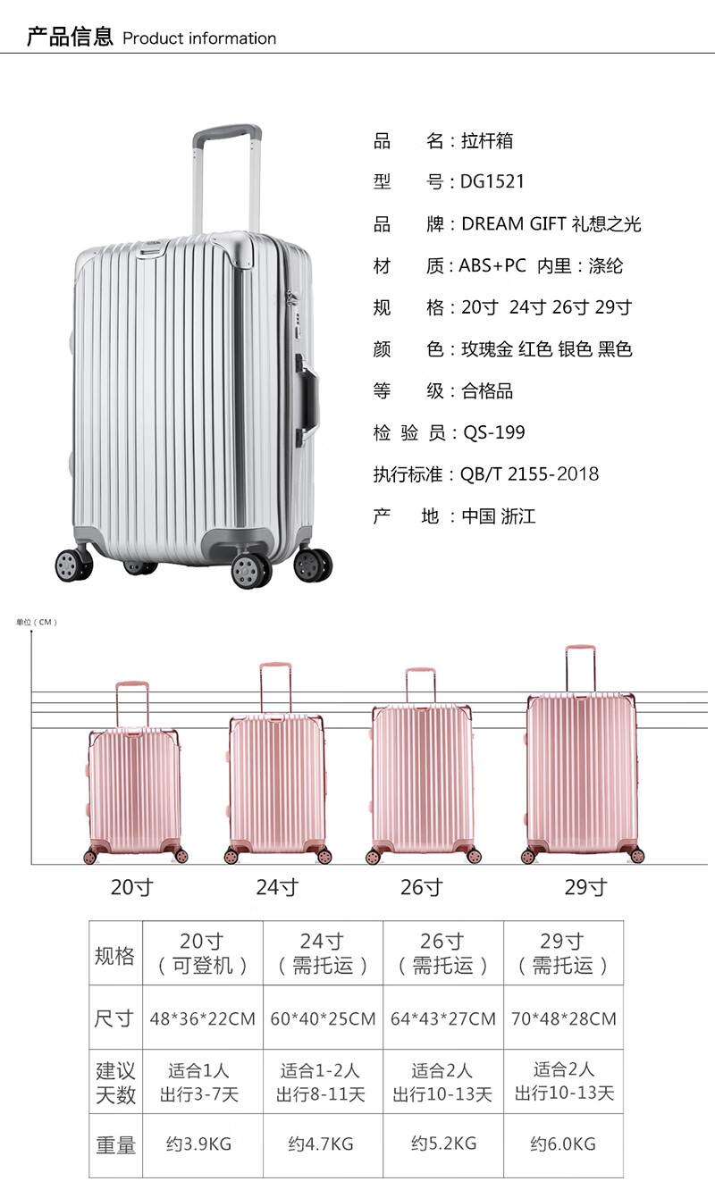 礼想之光 时尚商务拉链款旅行行李20寸DG1521