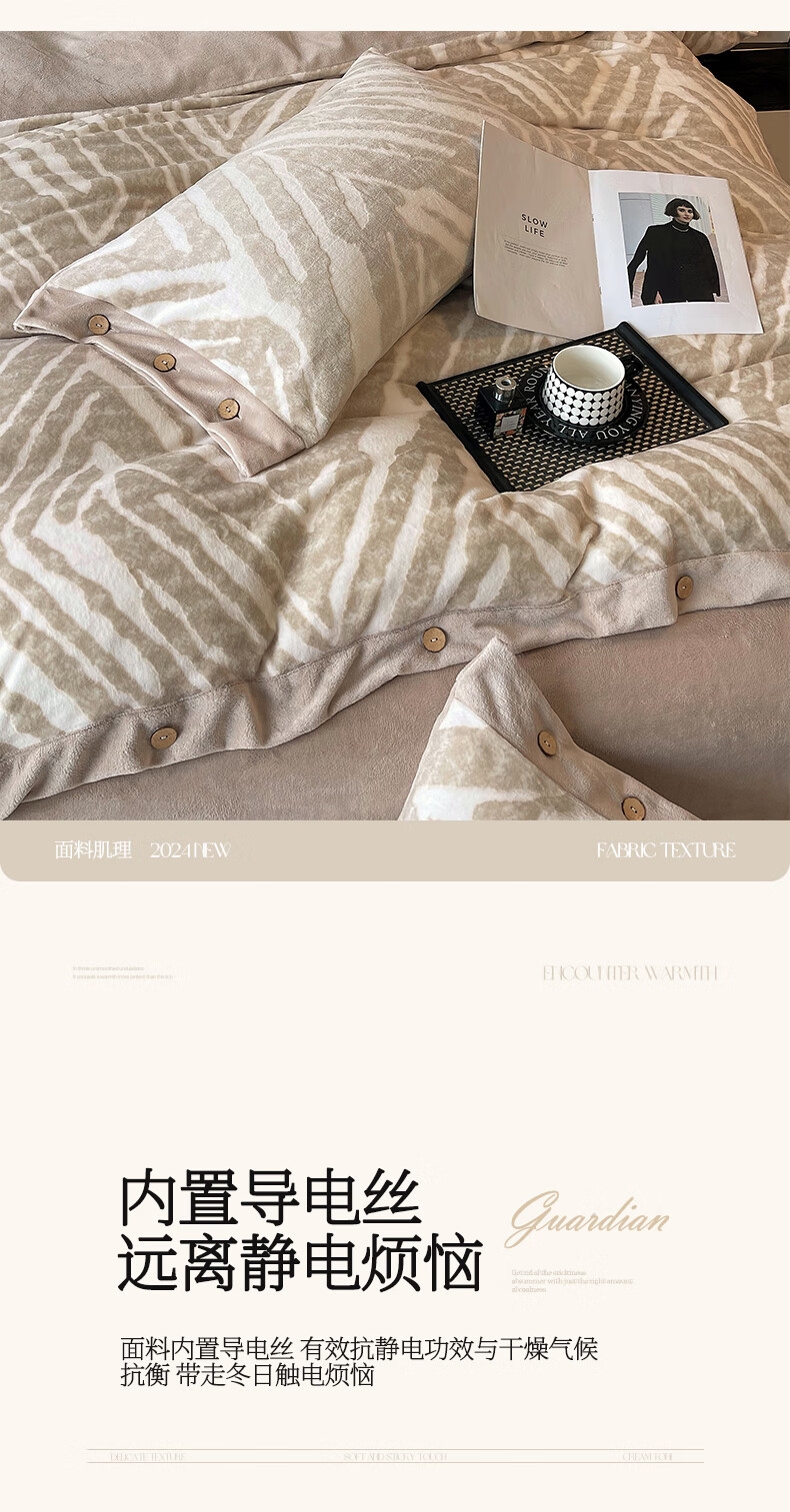雅鹿 A类高克重牛奶绒四件套YLCN010