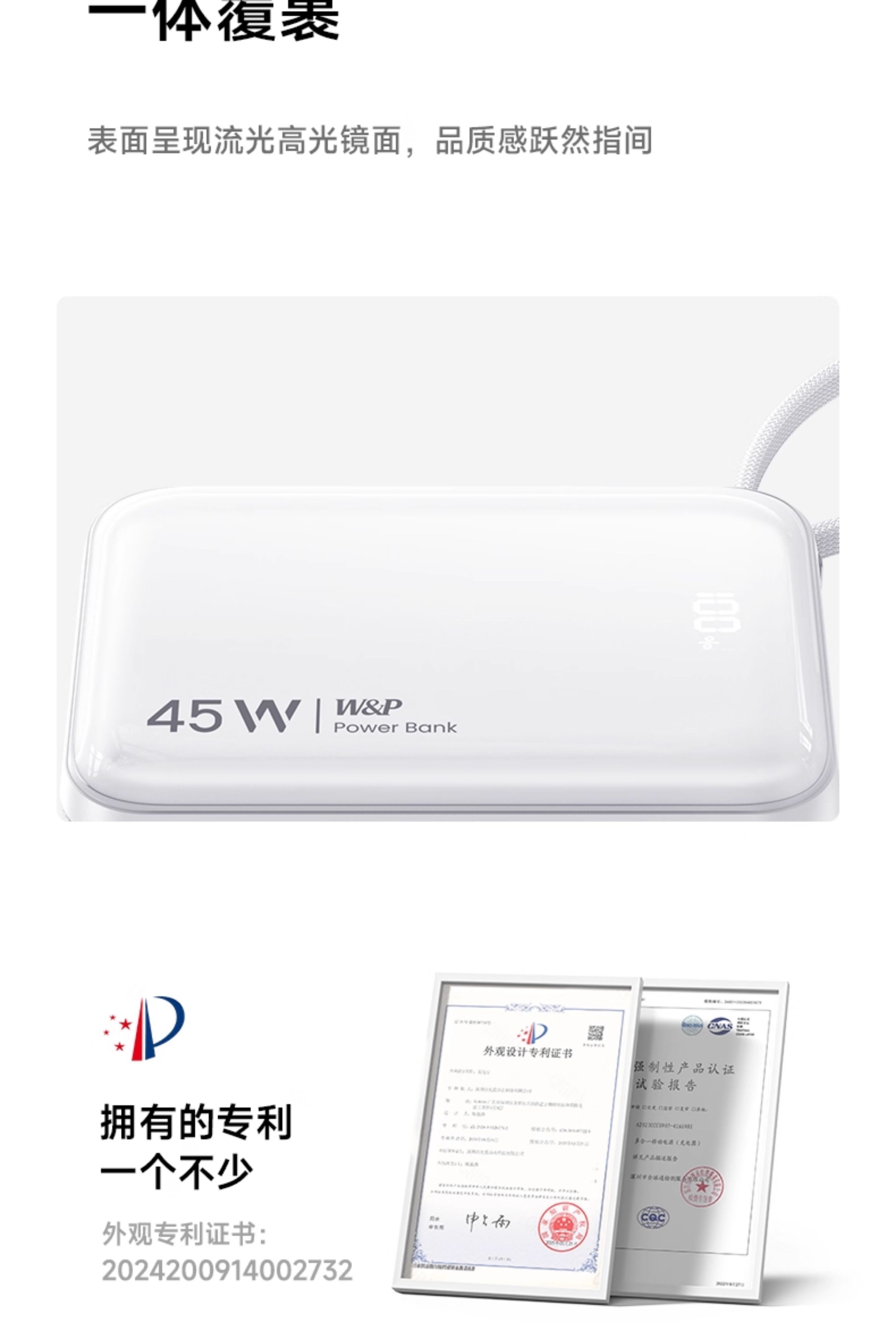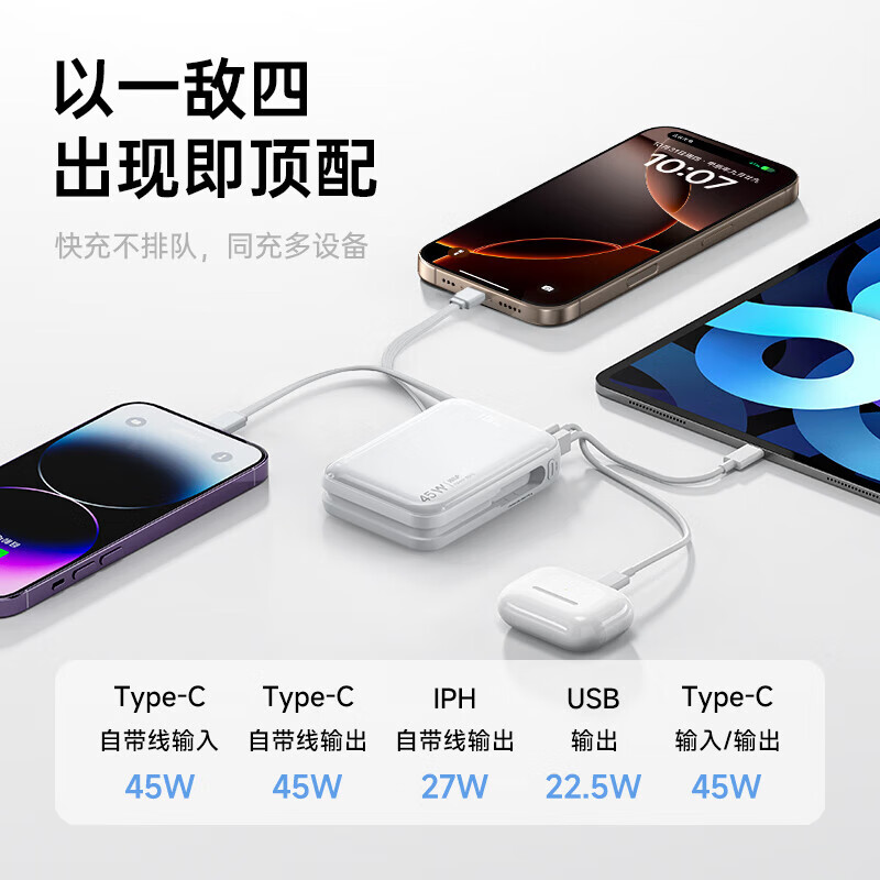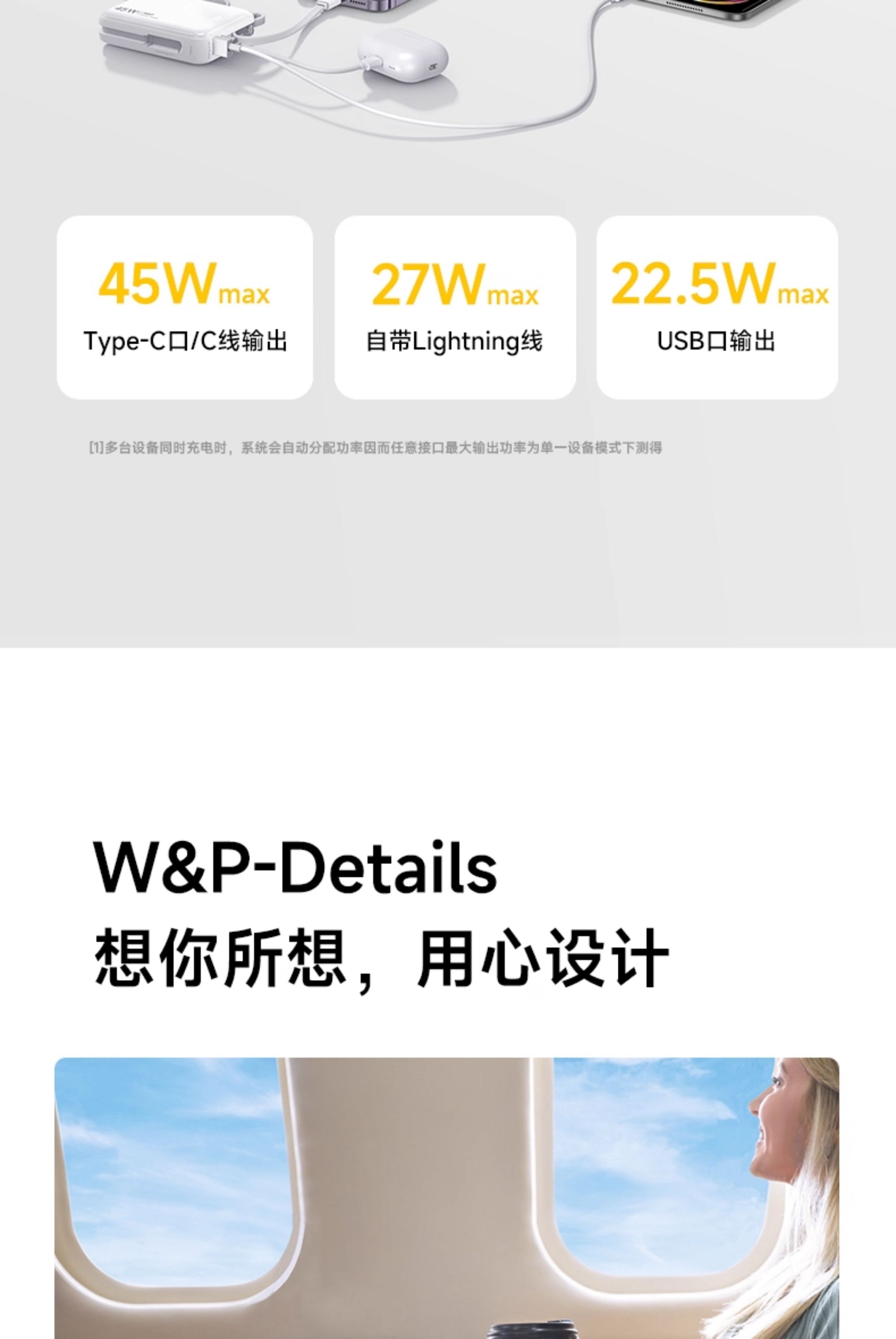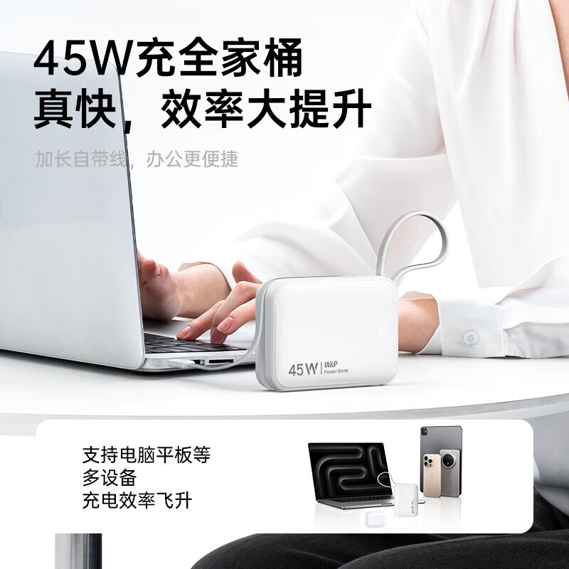 Mini更小体积 超大容量;45W充全家桶 效率大提升 ;20000mAh大容量出差旅行,青带它就够