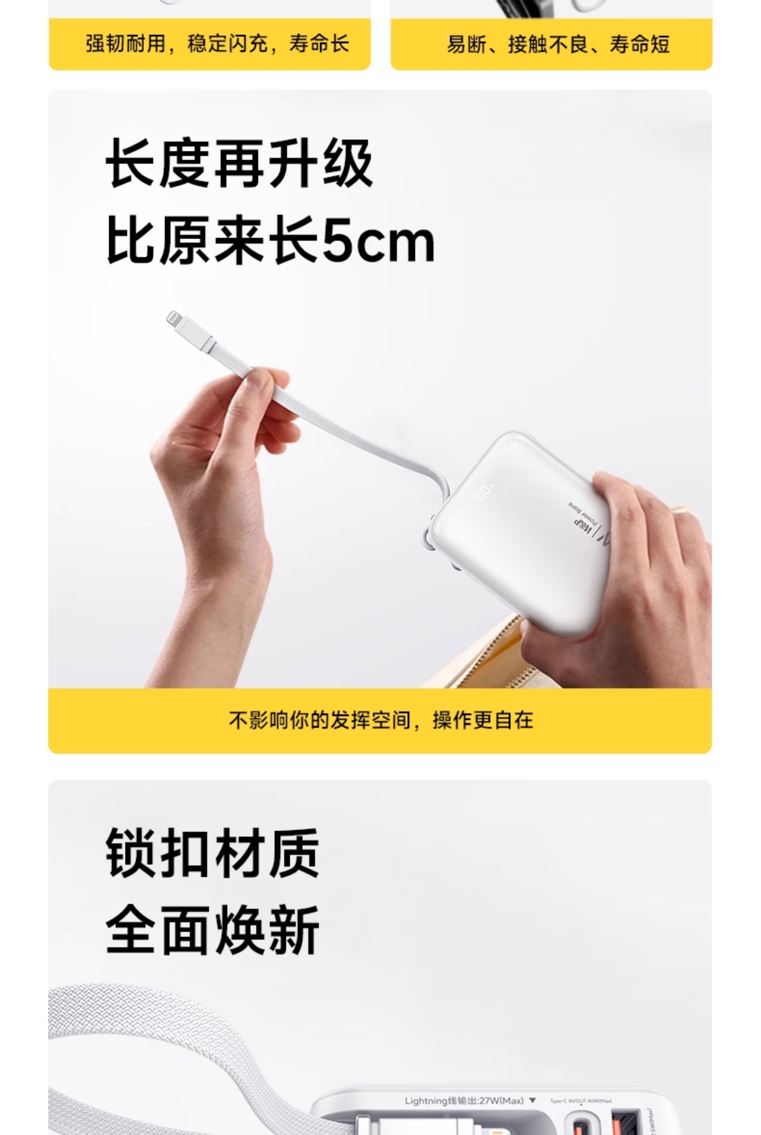 功能:多U口输出,双向快充,自带数据线,自带屏幕显示