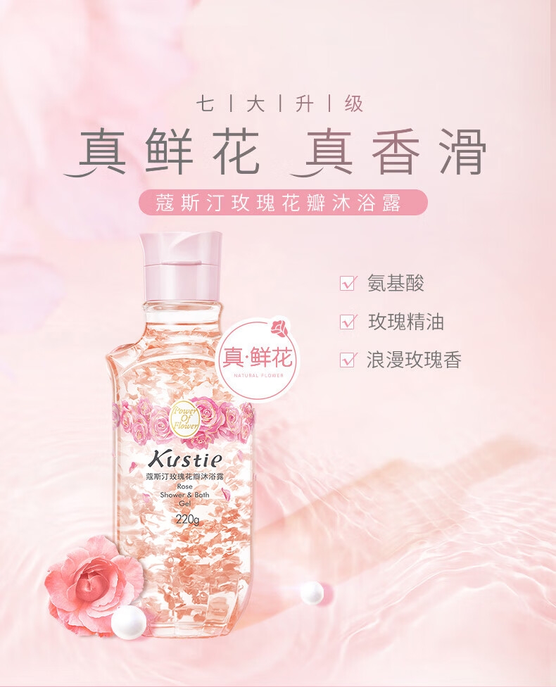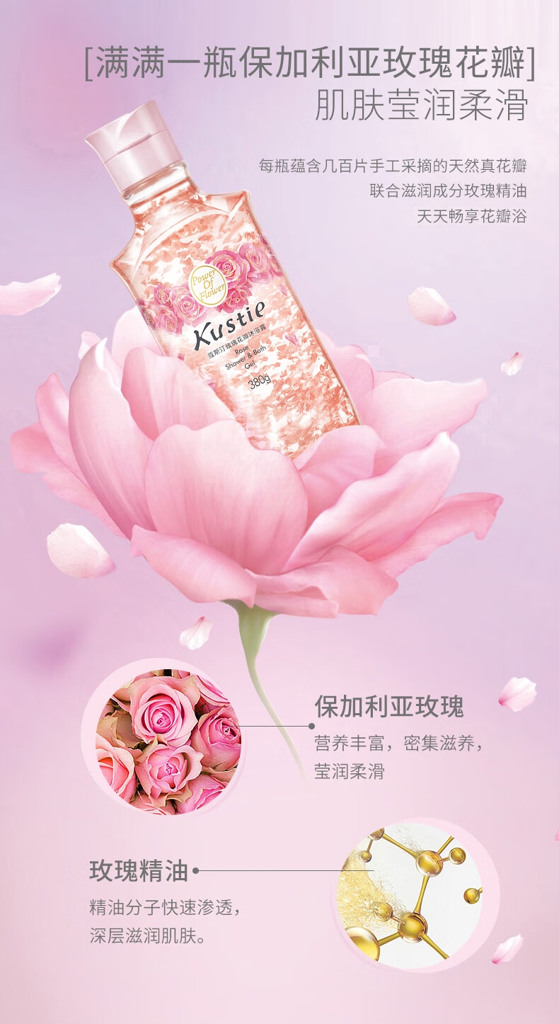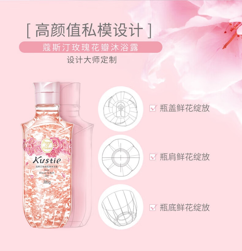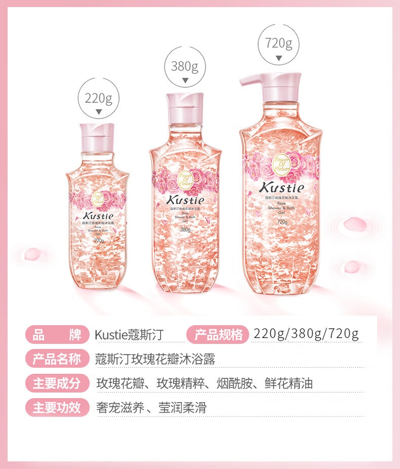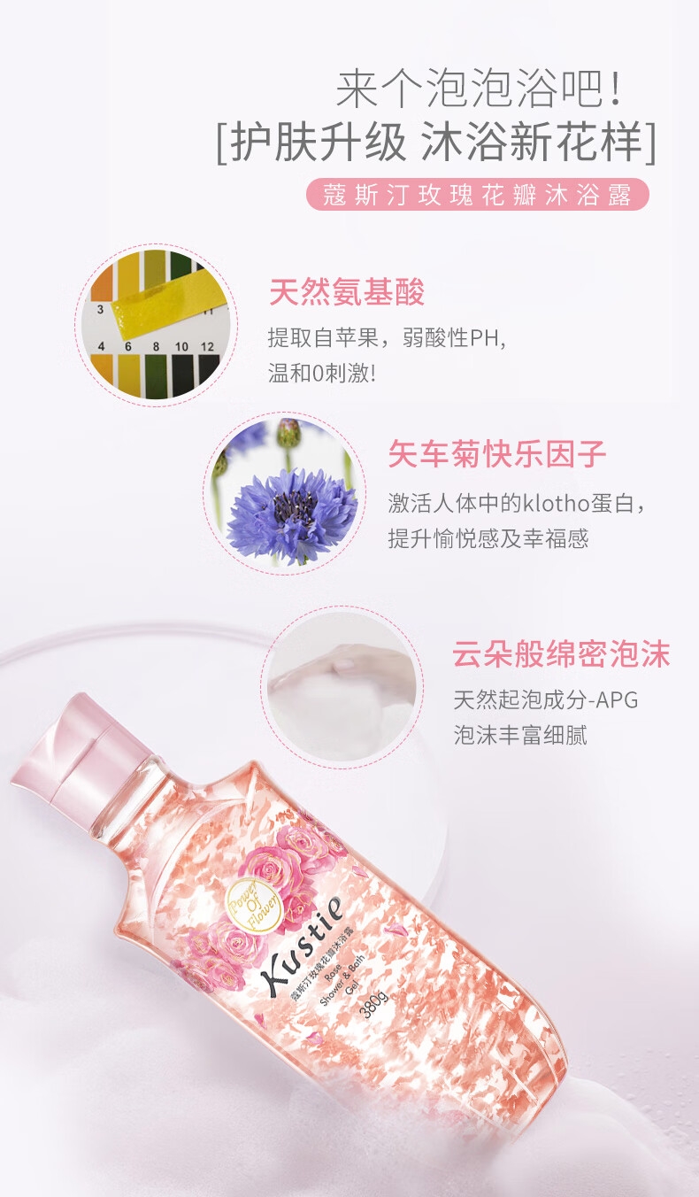 蔻斯汀 新升级玫瑰花瓣沐浴露380gKustie009