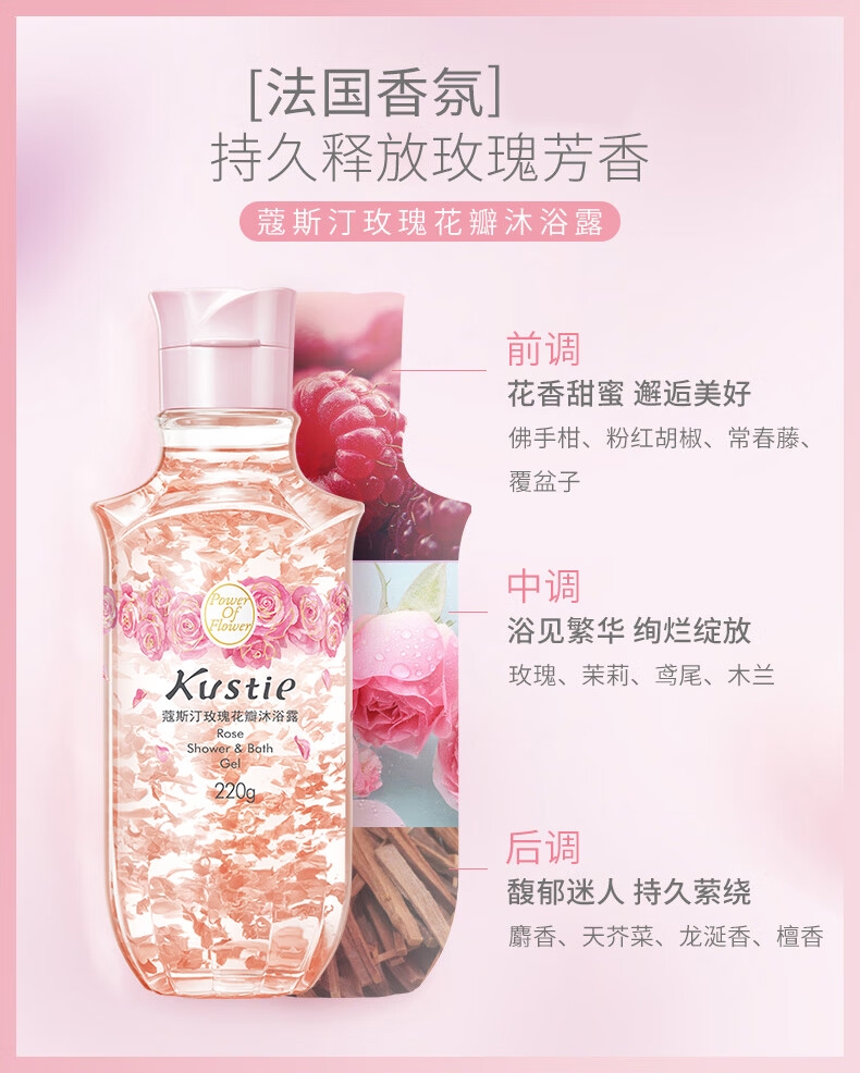 真实花瓣,浪漫可视;高级香氛,持久留香;温和洁净,洗养合一