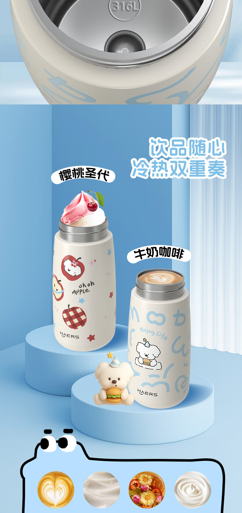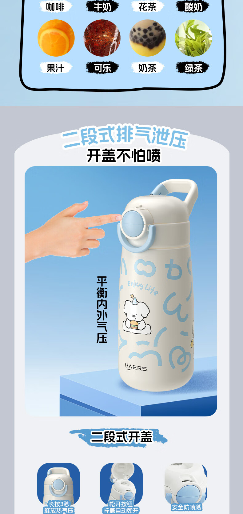 多色可选;长效保温;一盖双饮