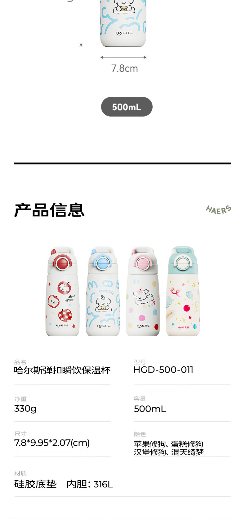 哈尔斯 弹扣瞬饮保温杯500mLHGD-500-011