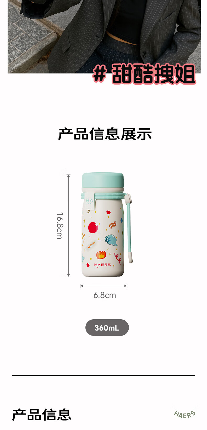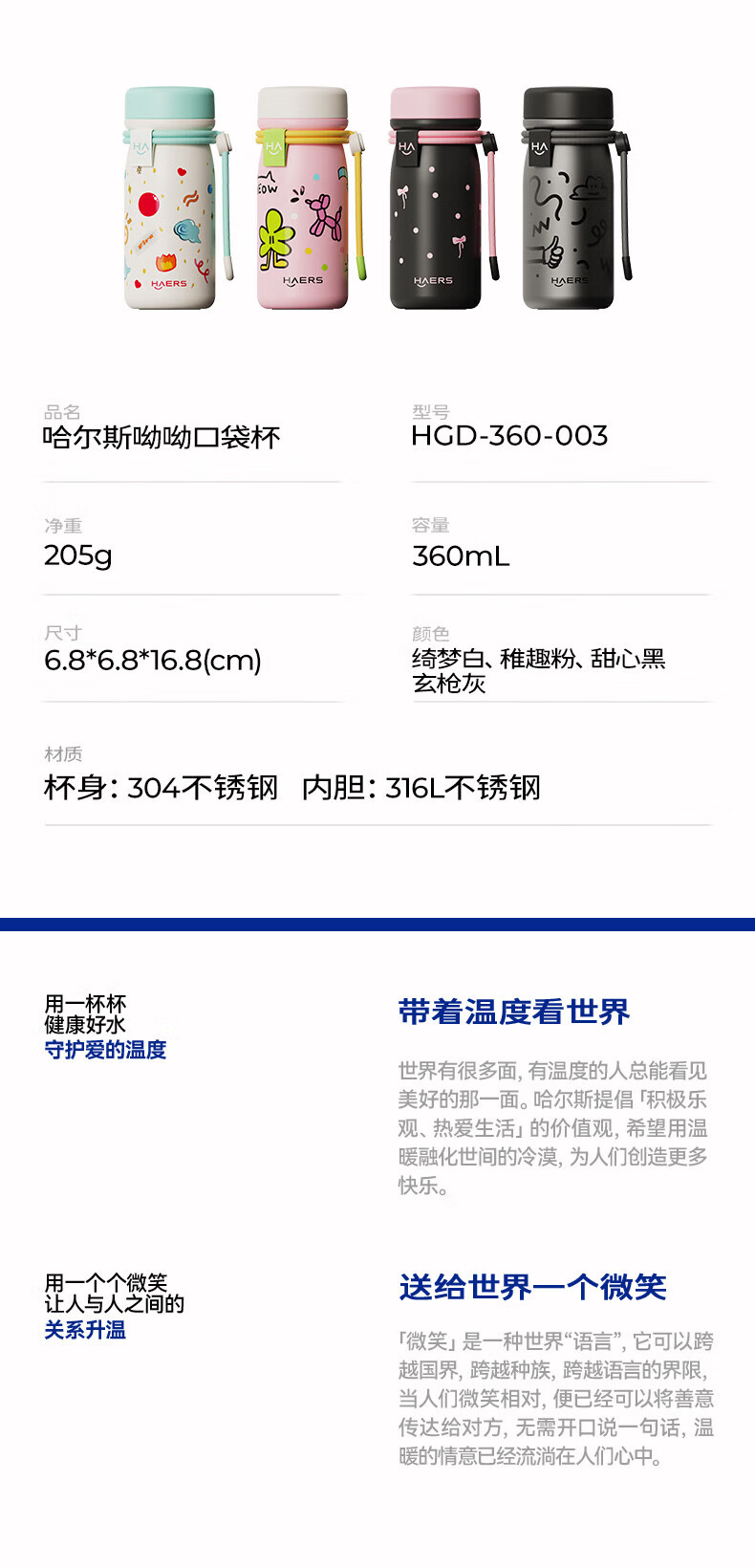哈尔斯 呦呦口袋杯保温杯360mLHGD-360-003