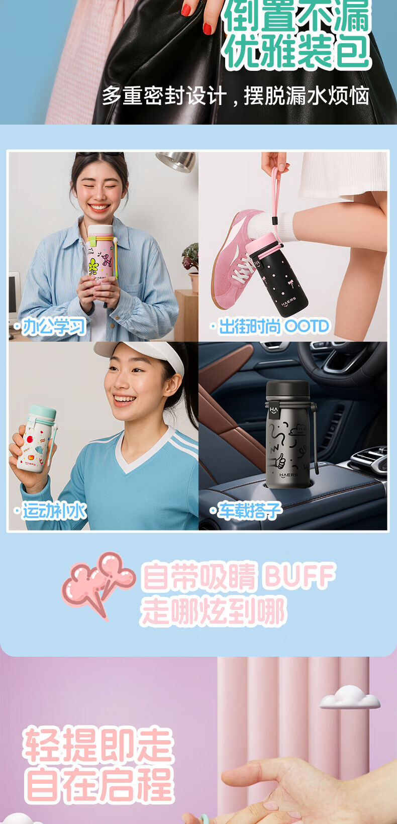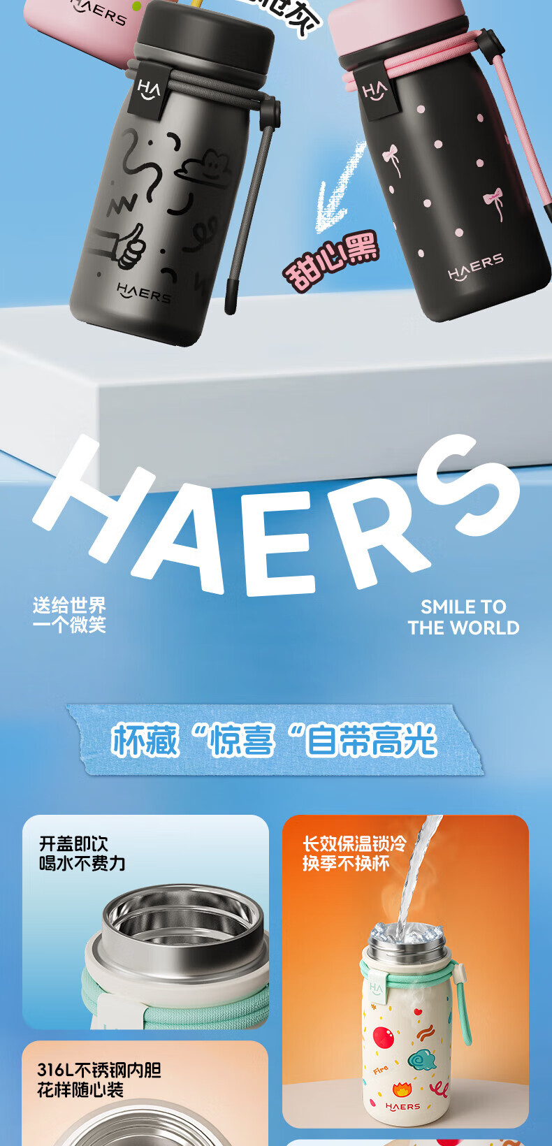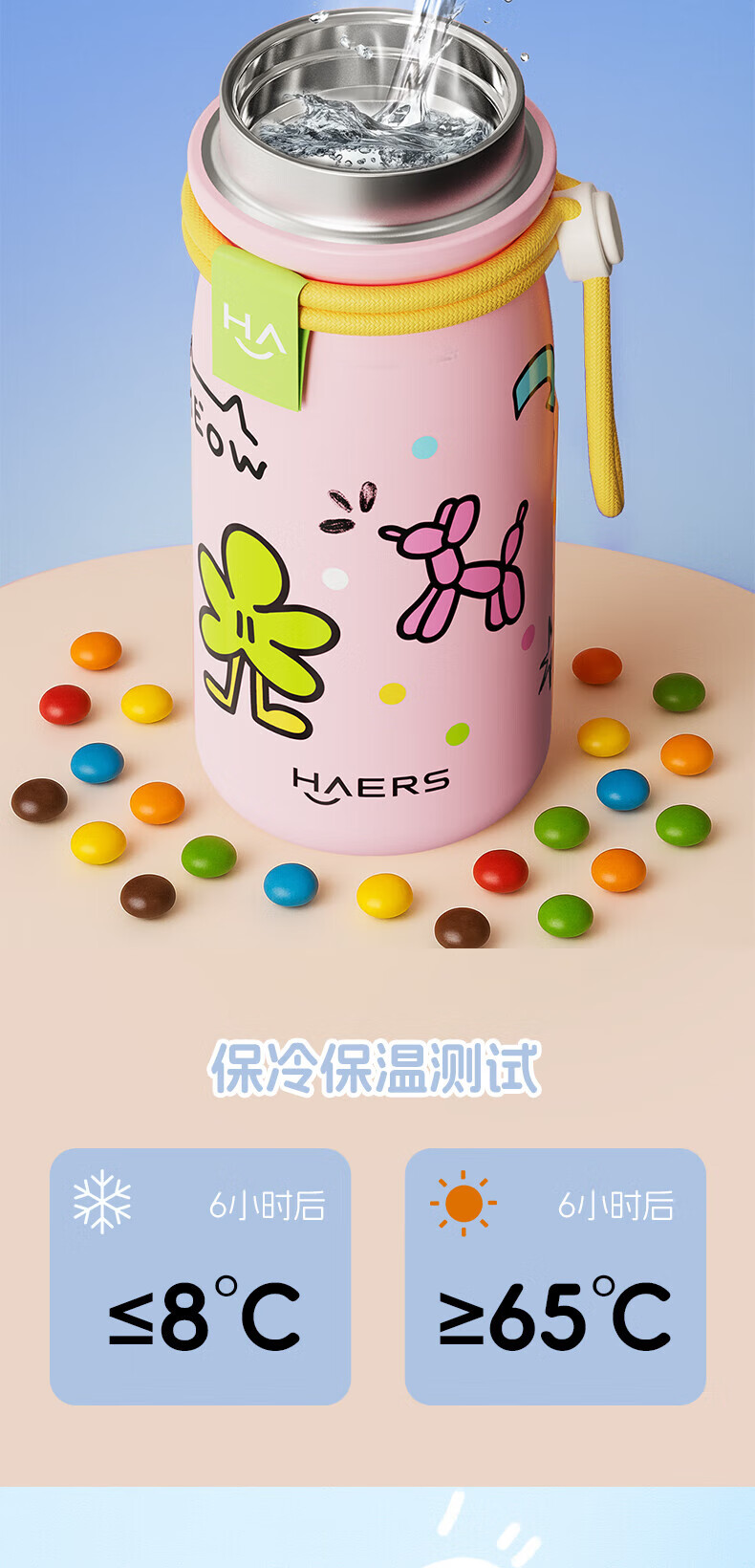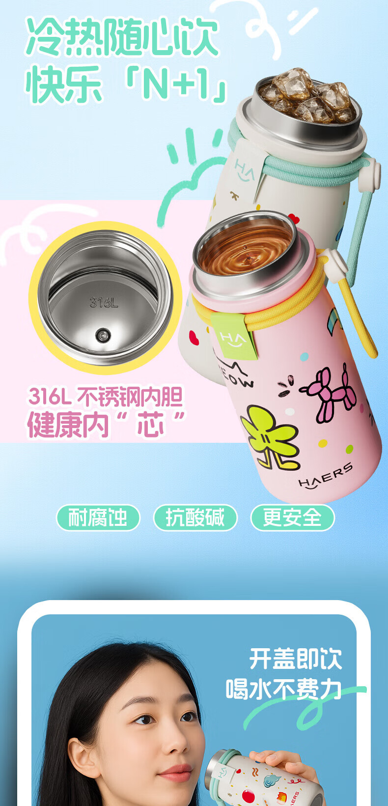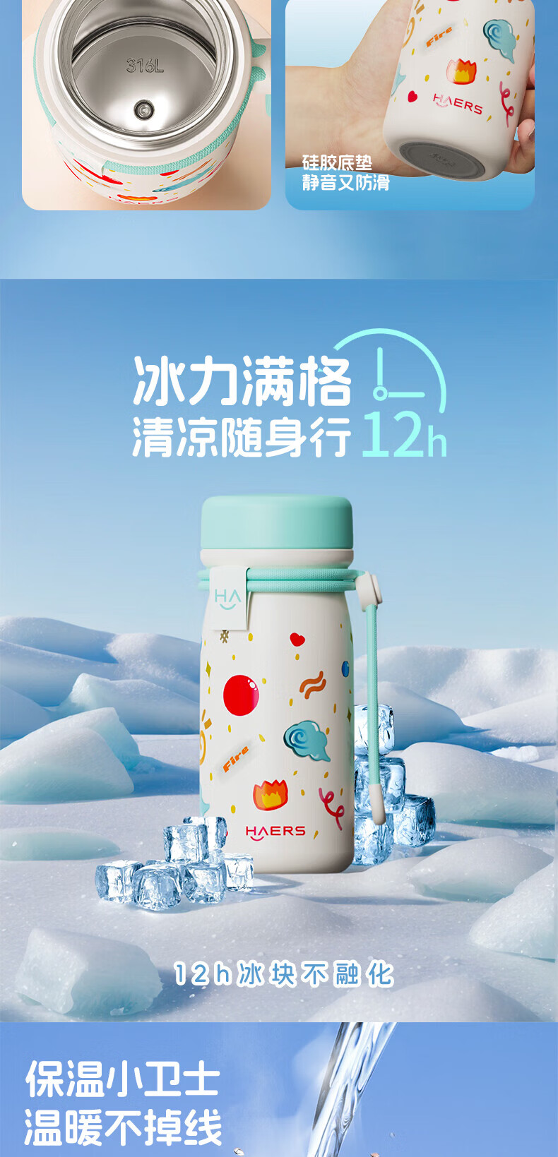 掌心尺寸 ,随手便携;编织提绳设计 ,时尚装饰单品;316L不锈钢内胆 ,健康安心;硅胶底垫 ,静音耐磨