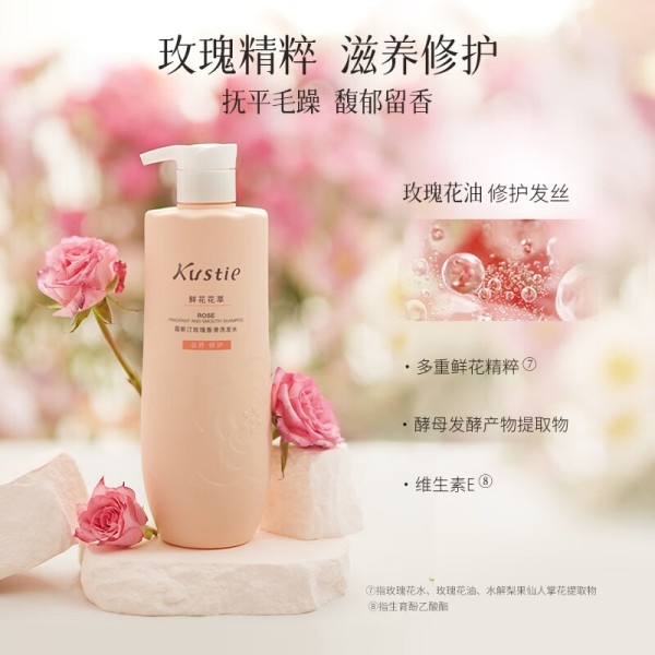 高级玫瑰香氛;顺滑易梳,抚平毛躁;丰盈泡沫,温和清洁