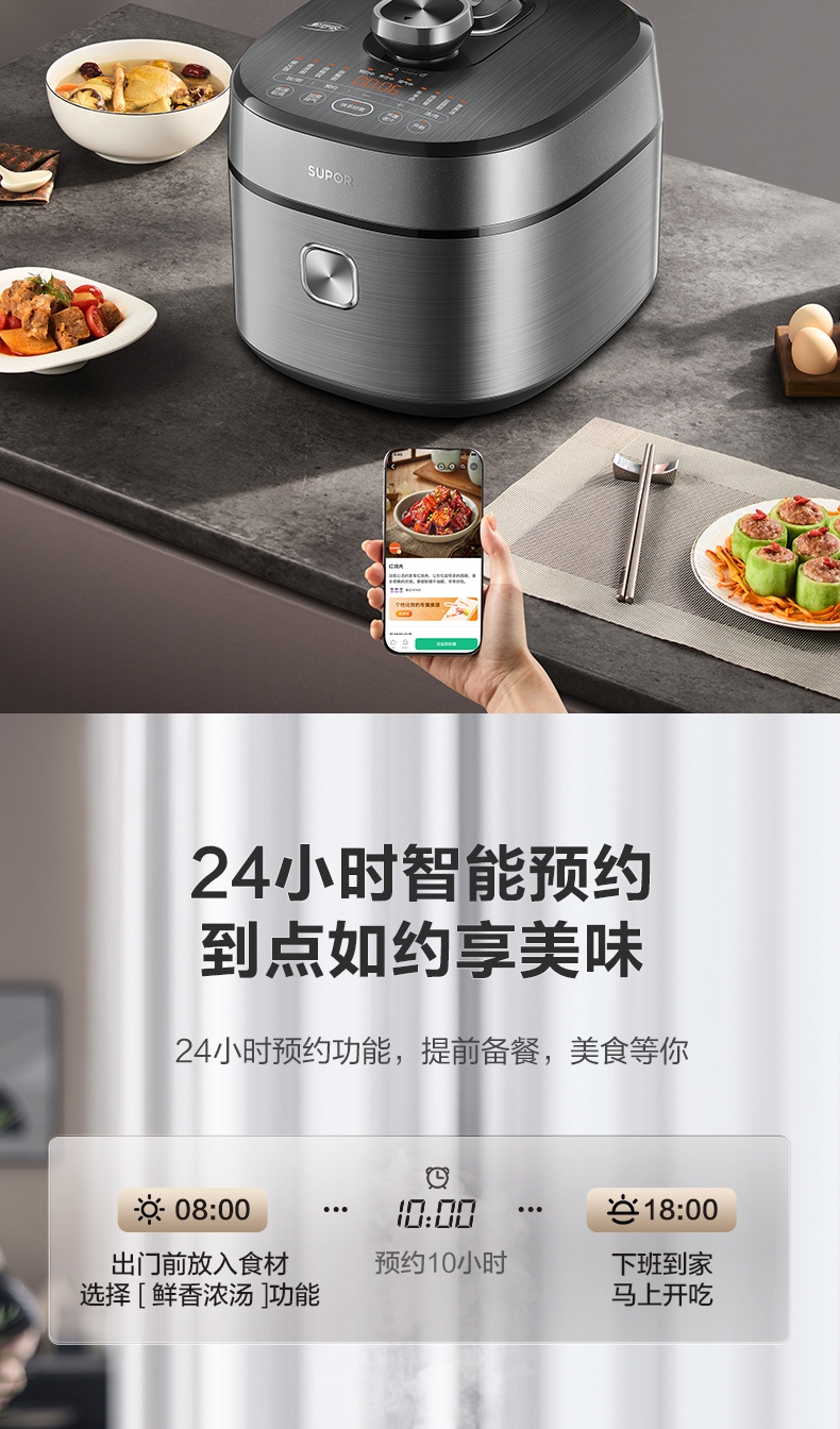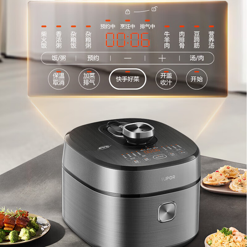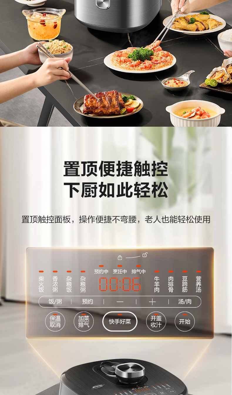 电压锅功能:煮,炖,焖,预约,定时