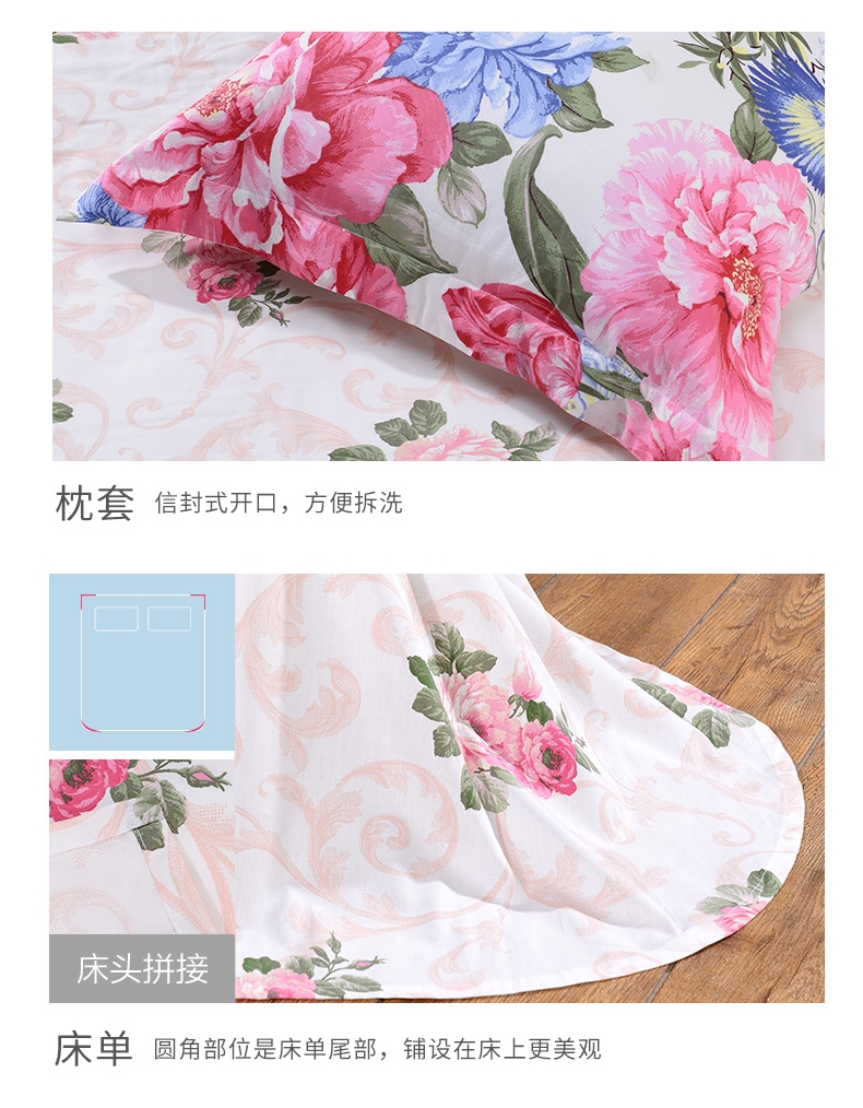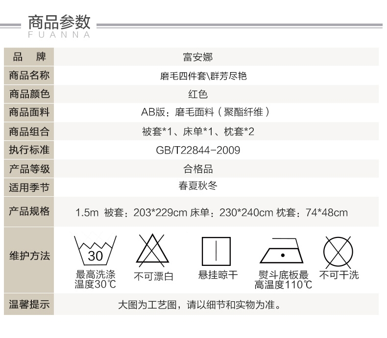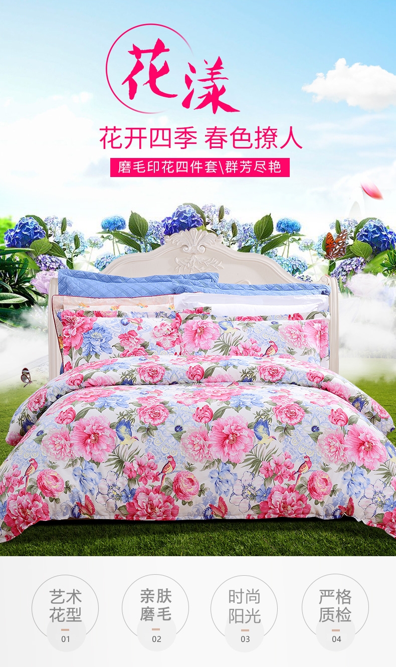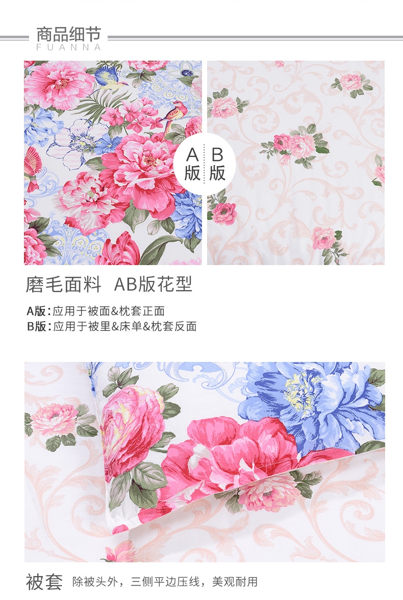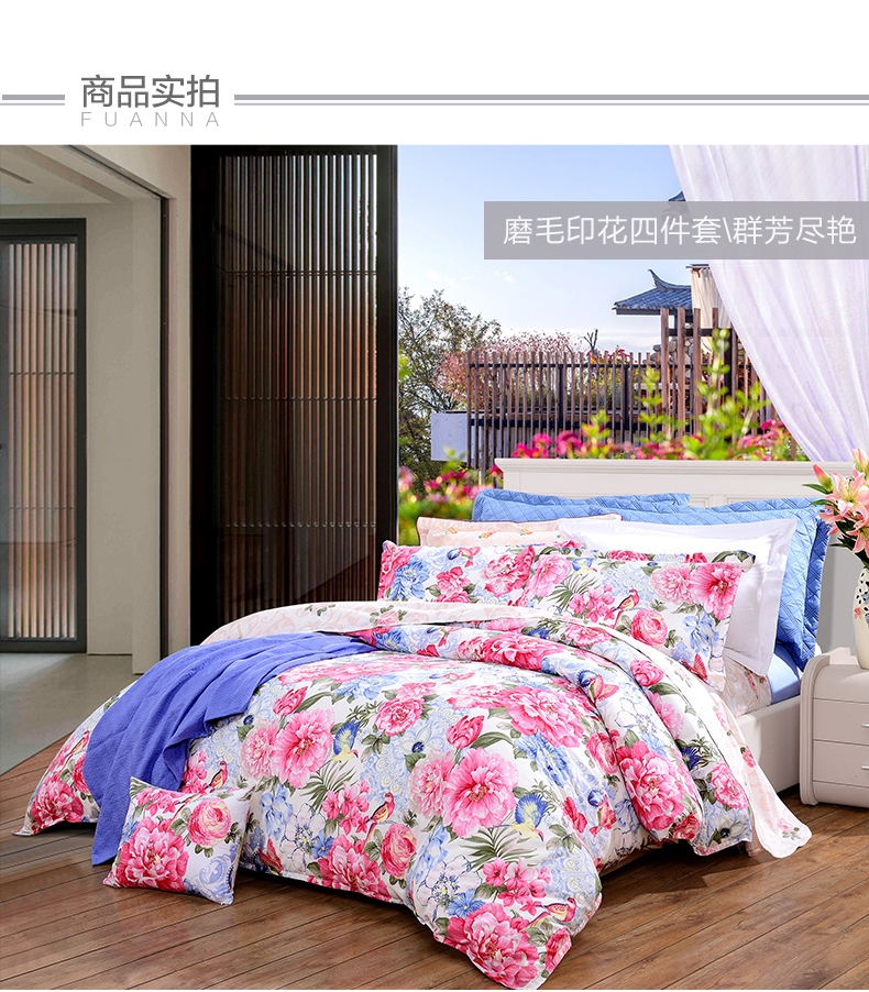 富安娜 磨毛四件套群芳尽艳203*229cm