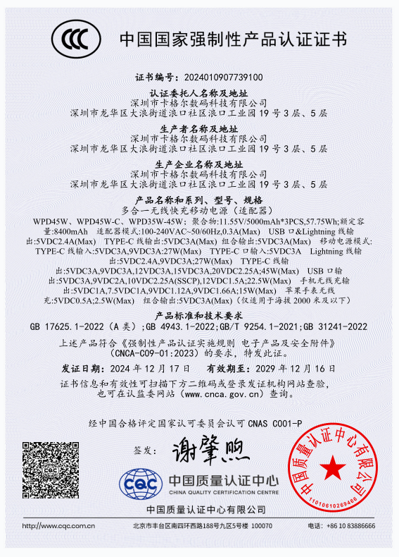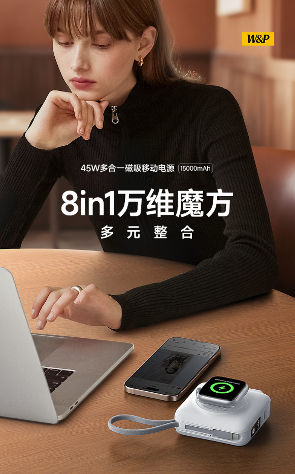 自带隐藏式AC插头和双快充线;三合一磁吸无线充,便携拎手一拎就走;国家3C认证,放心上飞机