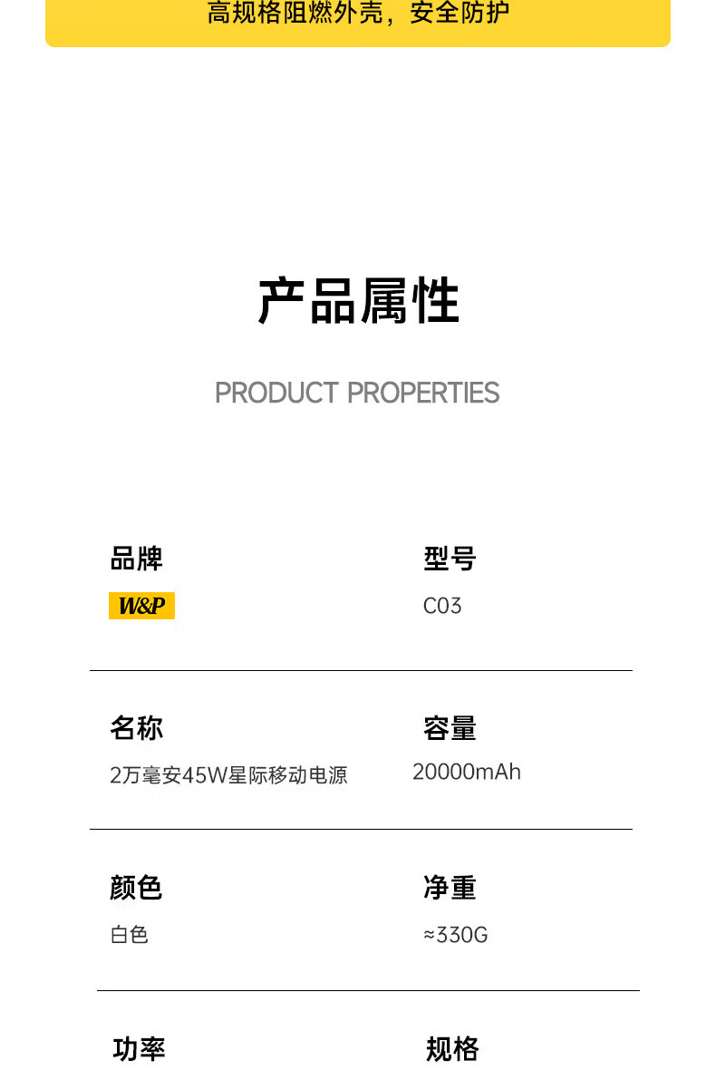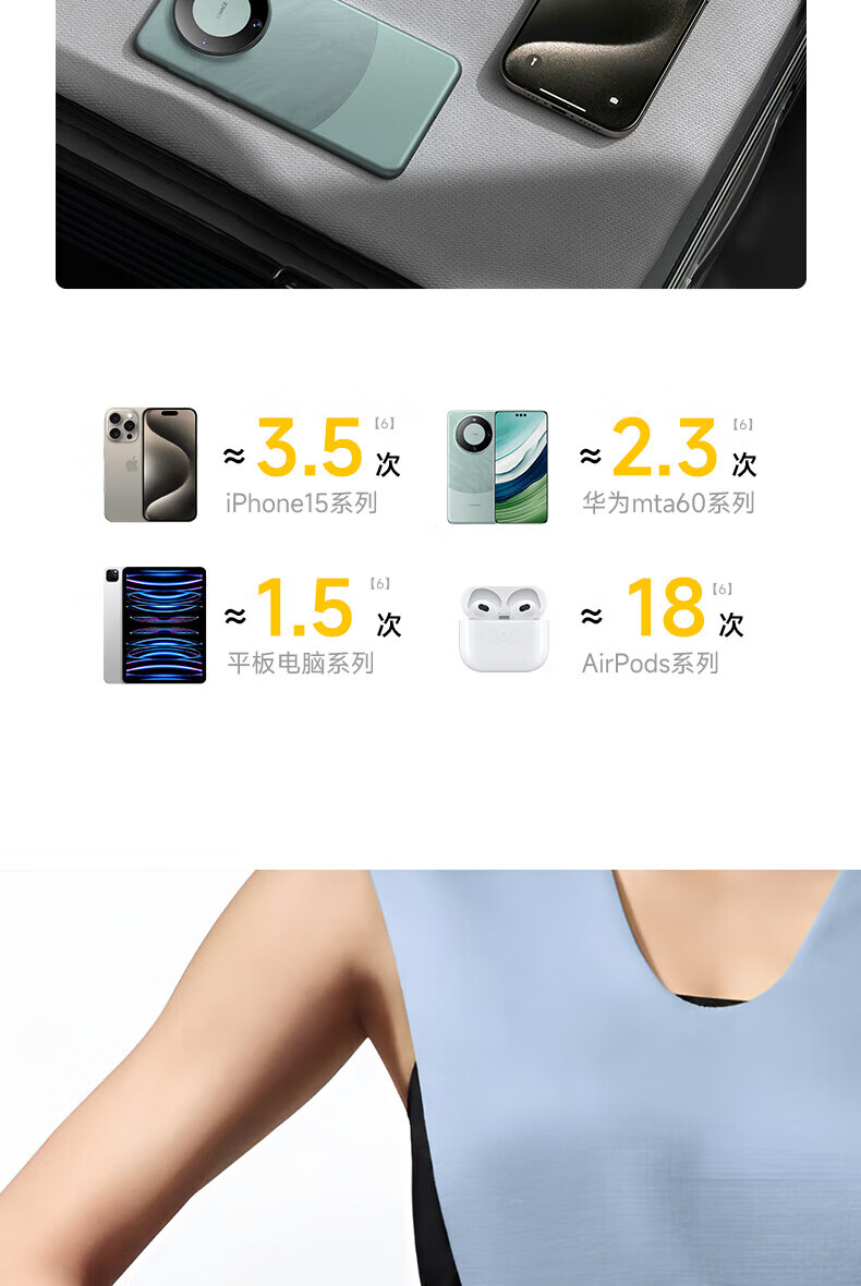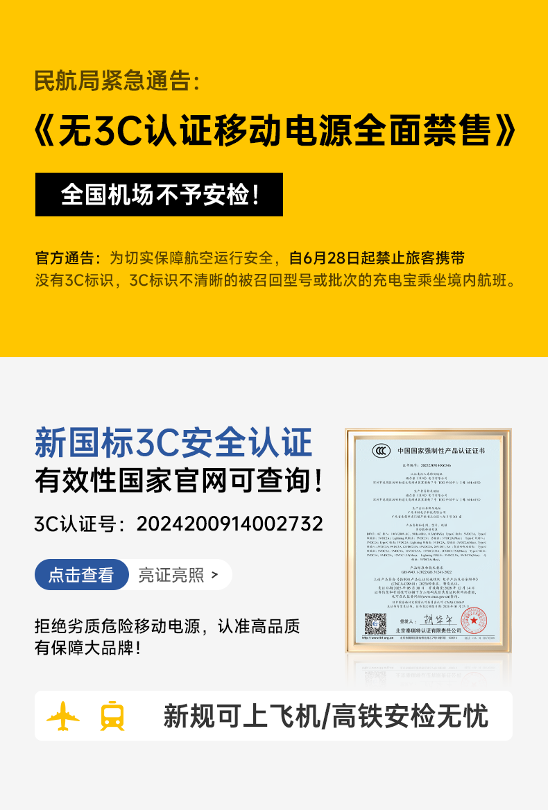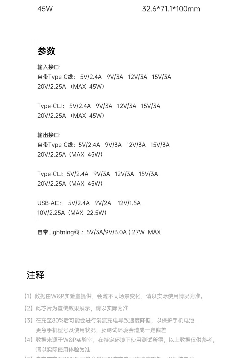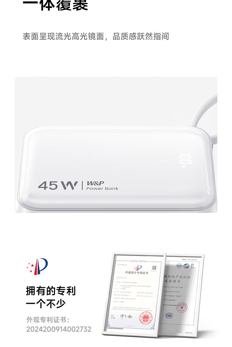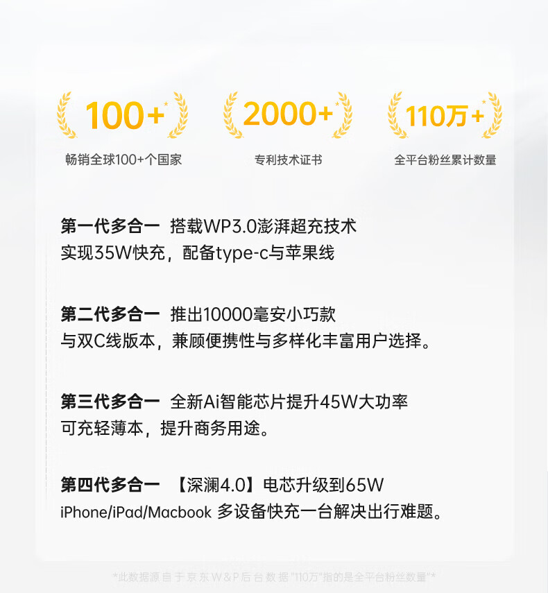 自带快充双线 无需带线,拿起就充;20000mAh大容量每次,远行都有底气;自带快充双线一次充4台