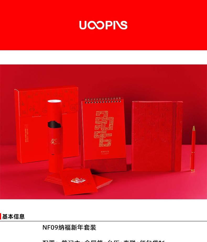 配置:笔记本+金属笔+台历+春联+红包袋*6