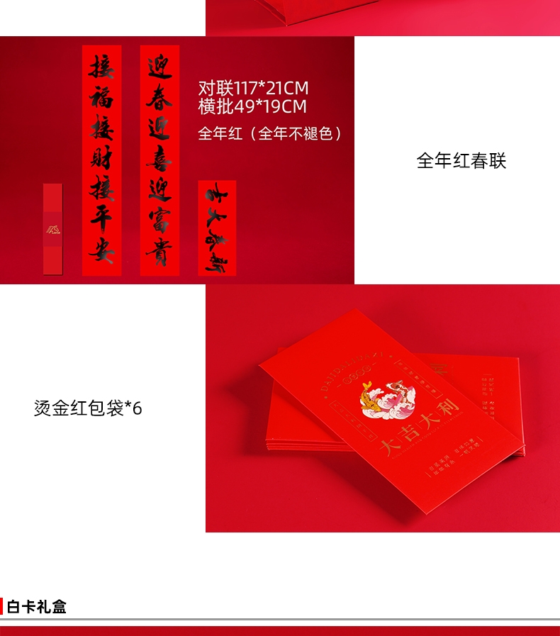 尺寸:保温杯300mL 台历215*125mm 春联1170*210mm 红包袋168*88mm