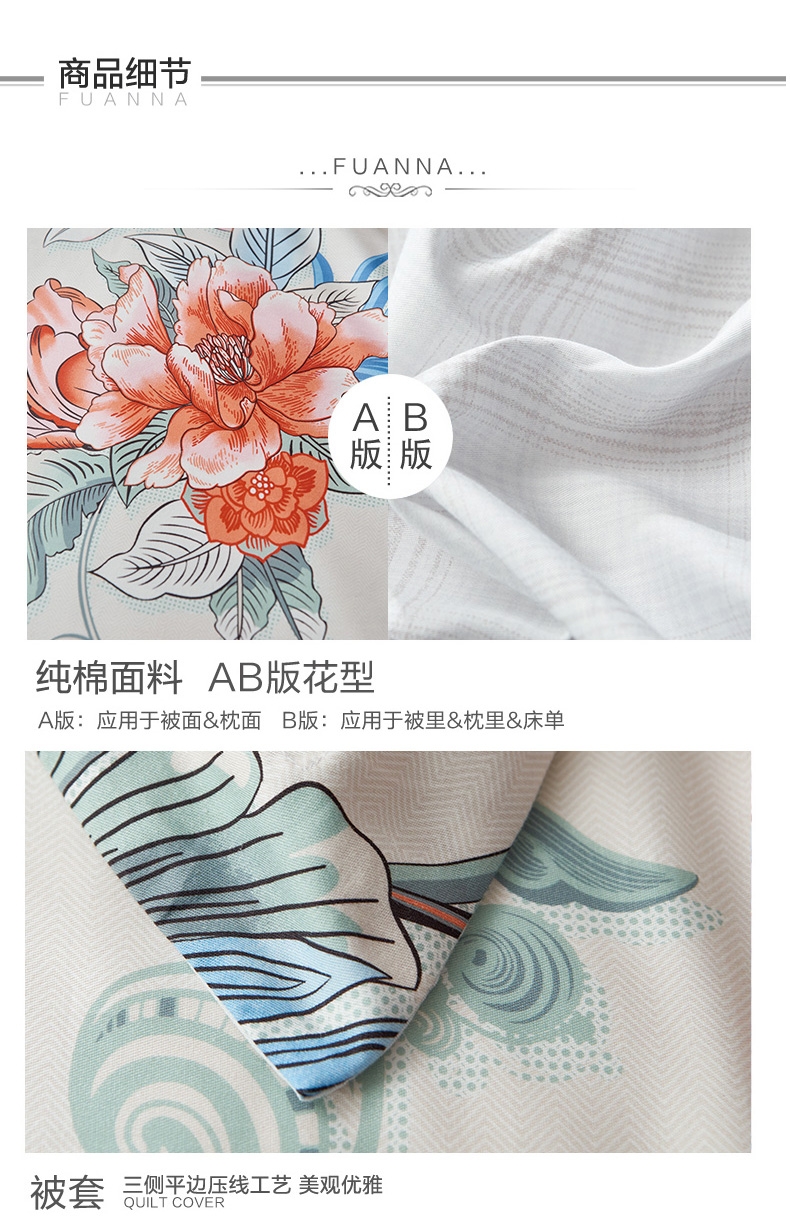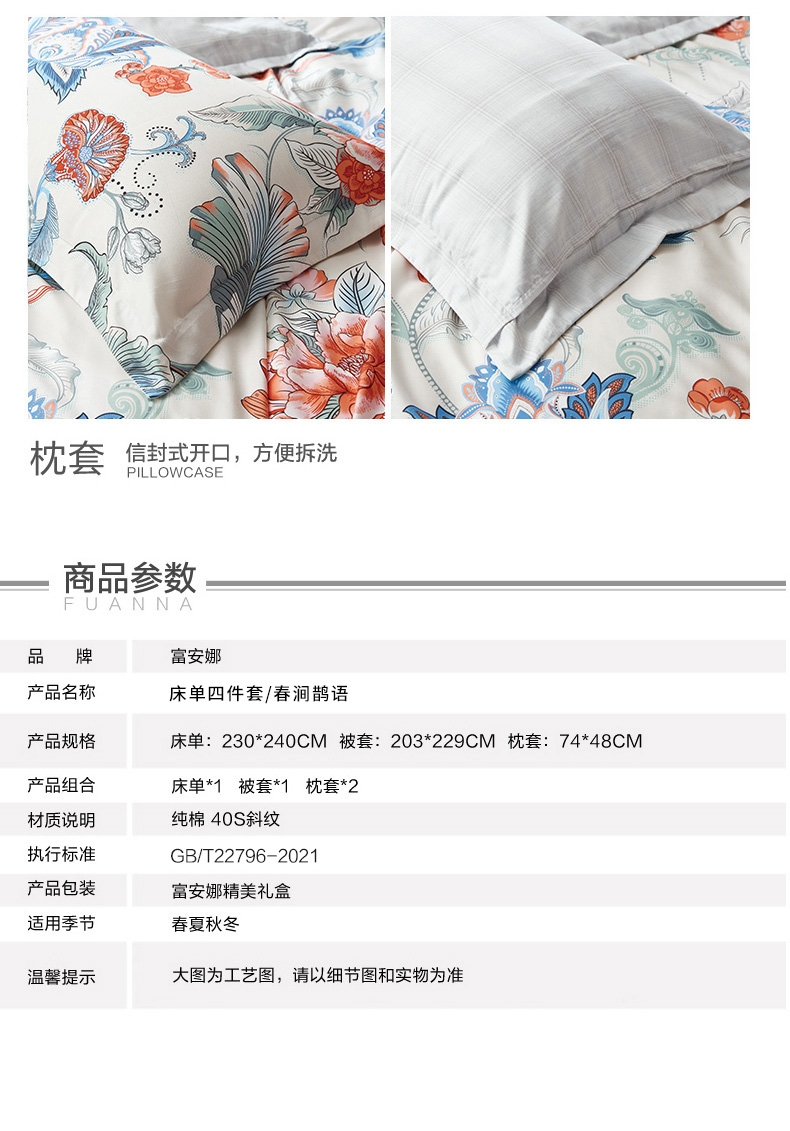 富安娜 纯棉四件套春涧鹊语