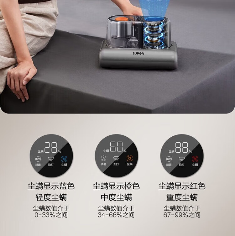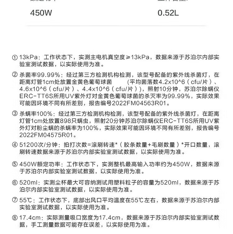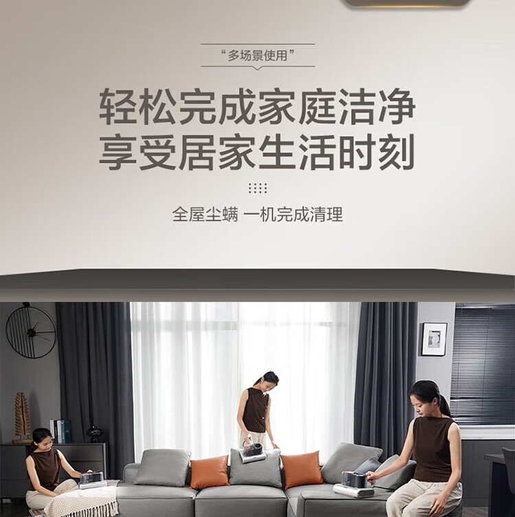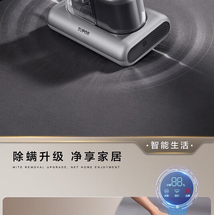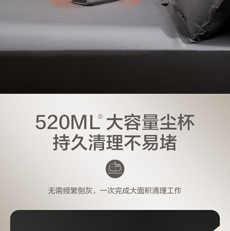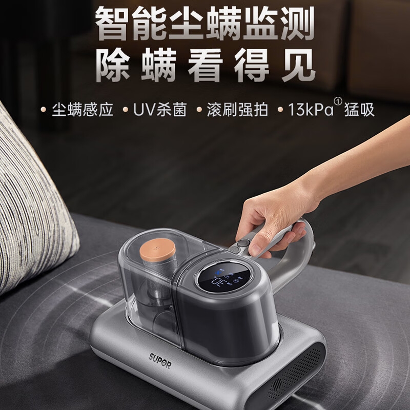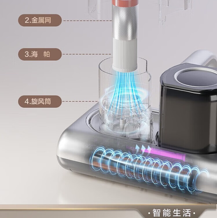 滚刷拍打,深层除螨,螨虫无处藏匿;旋风.双杯尘气分离,一边除螨,一边过滤;450W大功率,13kpa真空度