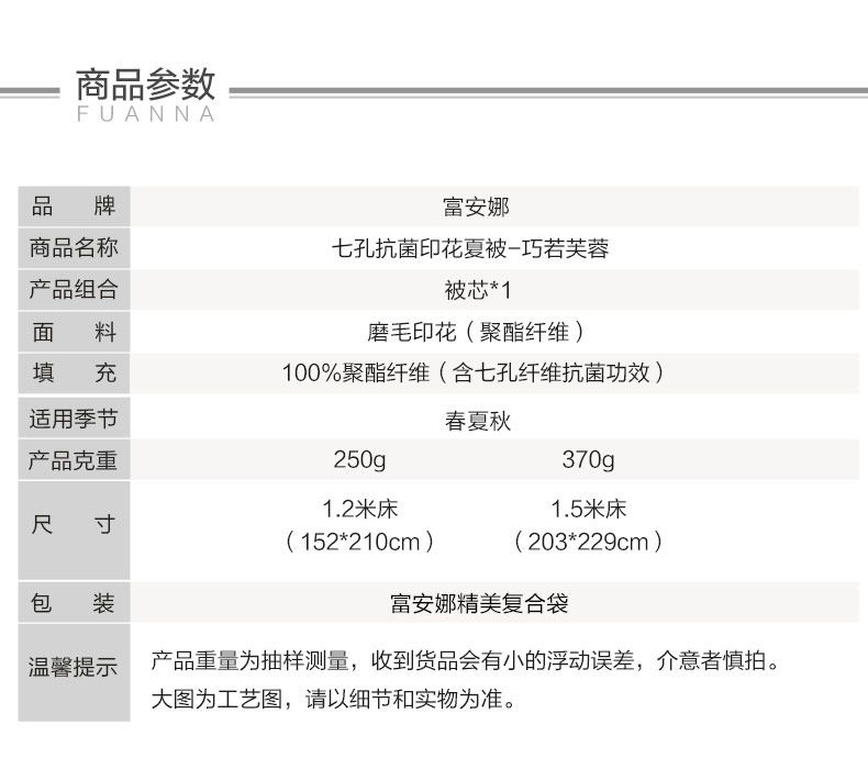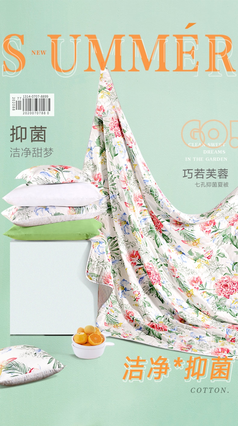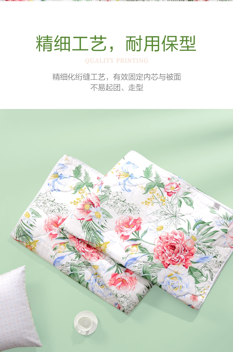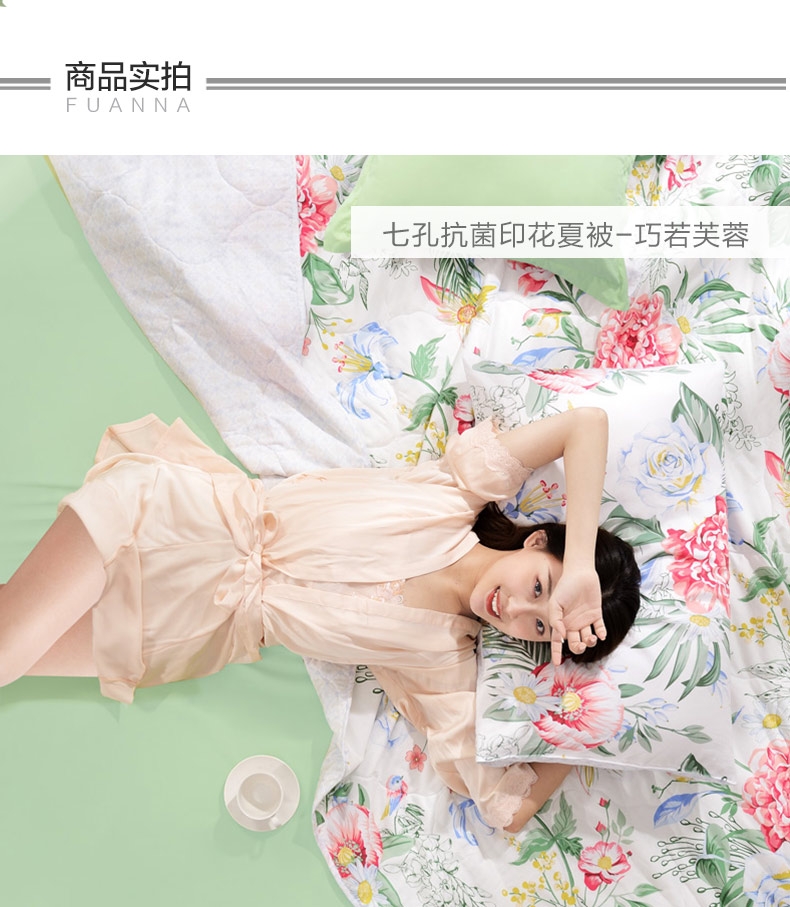富安娜 七孔抗菌印花夏被巧若芙蓉