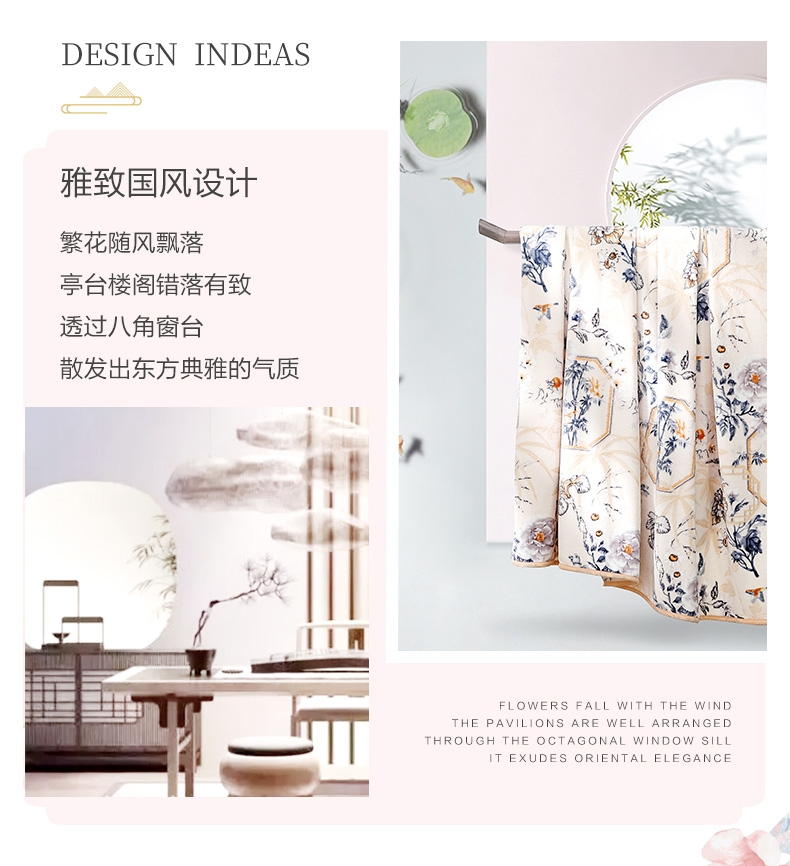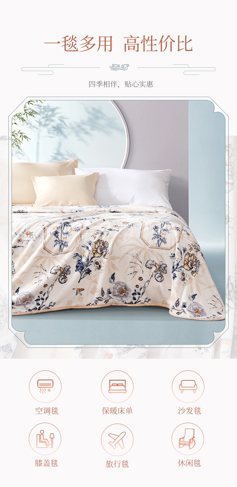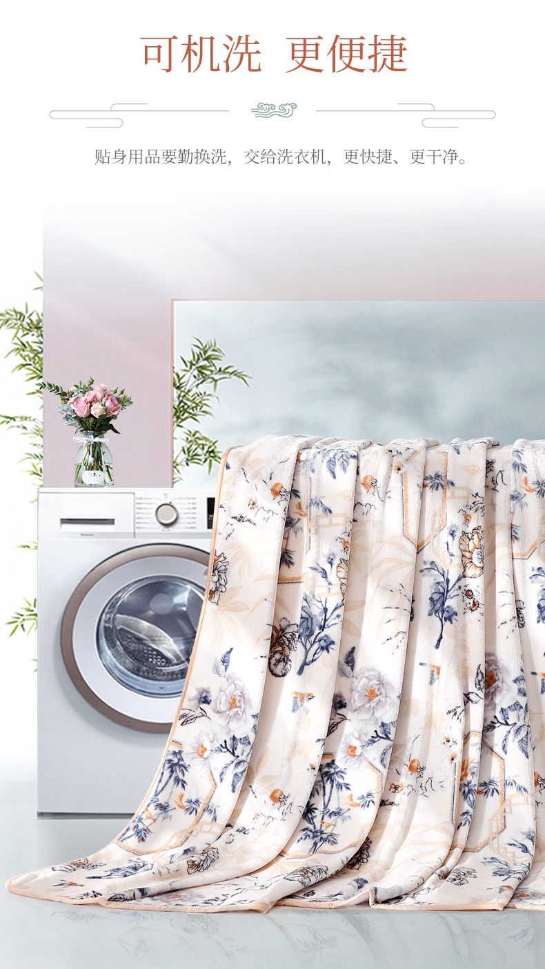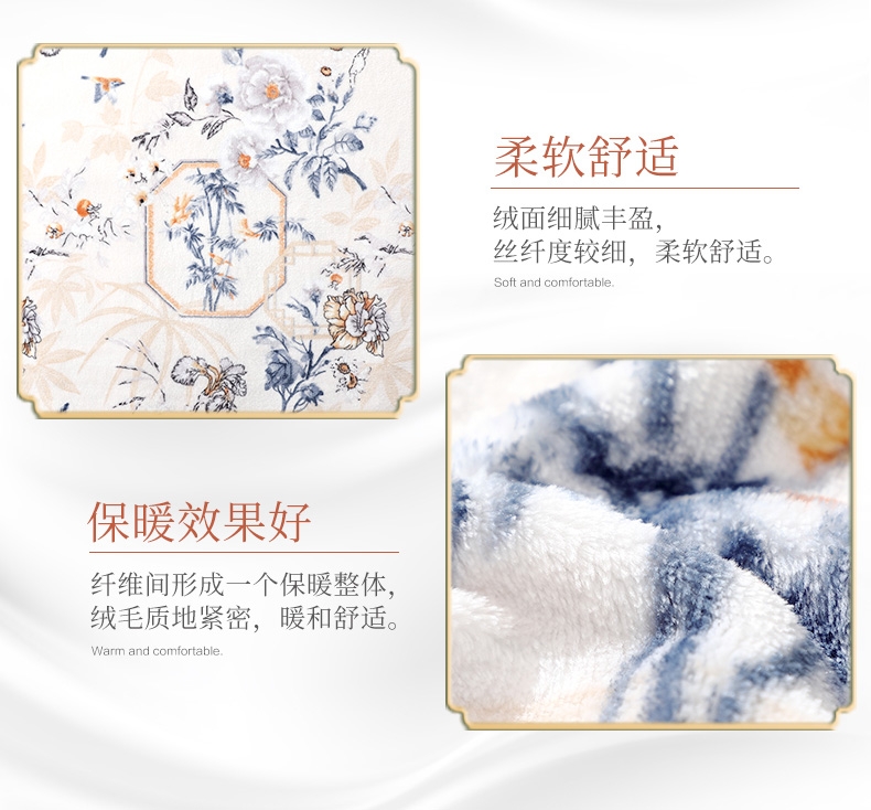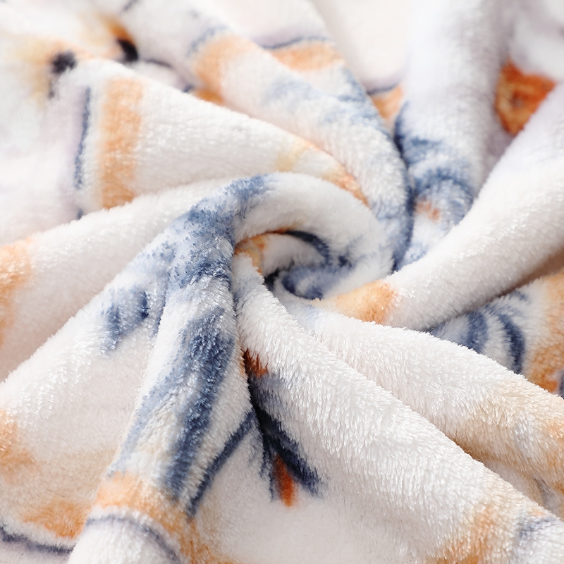 法兰绒是指粗梳毛纱织制的一种柔软而有绒面的毛织物;产品轻薄舒适、方便打理携带。乃居家、旅行、办公小憩;花型设计独特,绒面细腻丰盈,柔软舒适,透气舒爽