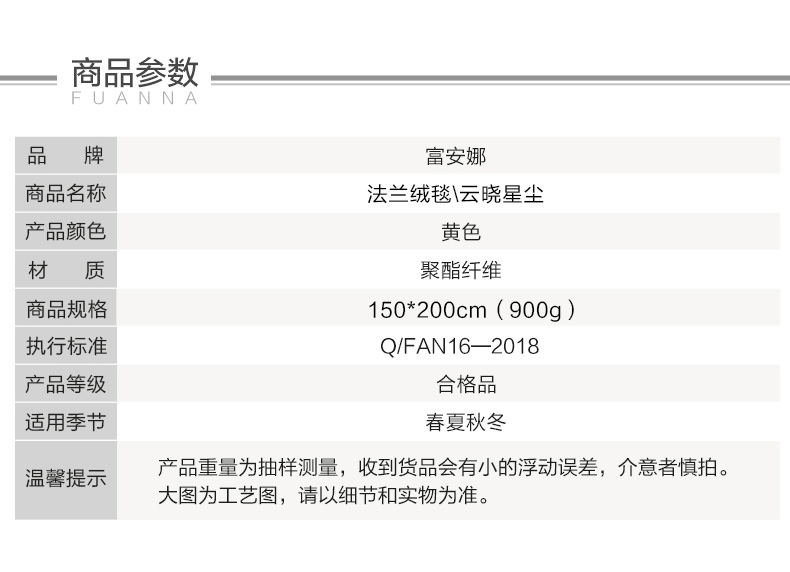 富安娜 单层法兰绒毯云晓星尘150*200cm